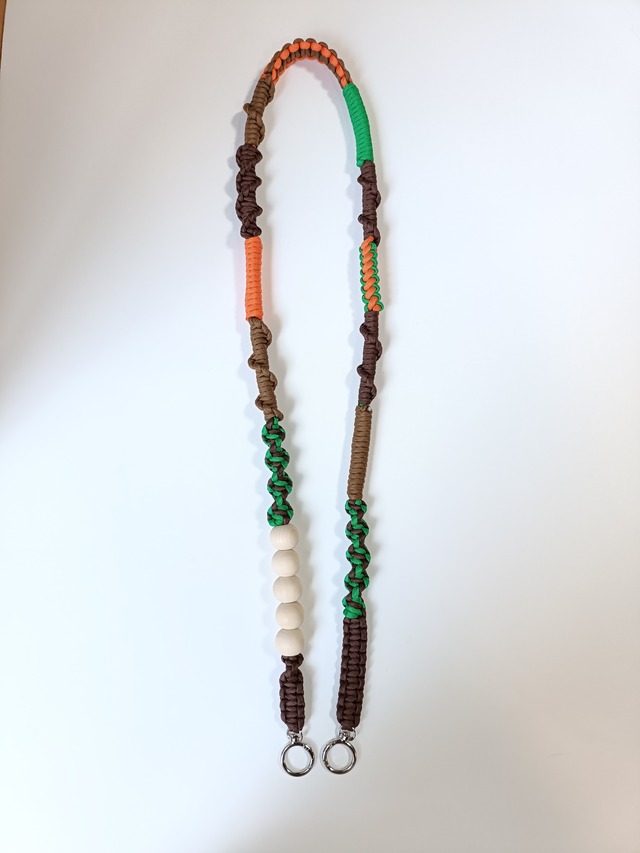 057/スマホショルダー/パラコード/ダークブラウン×ブラウン×オレンジ×グリーン×ウッドビーズ