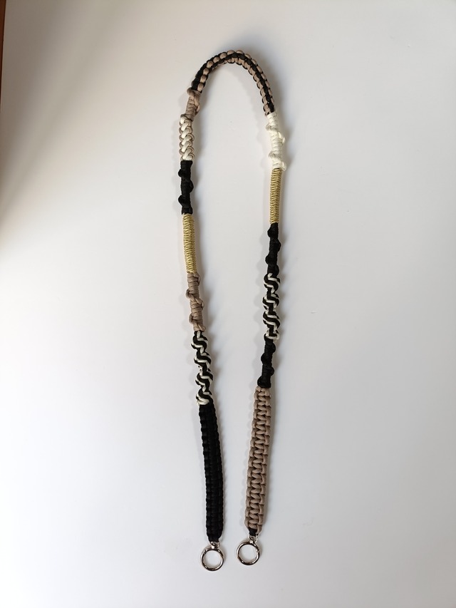 014/スマホショルダー/パラコード/ブラック×ベージュ×クリーム×ゴールド