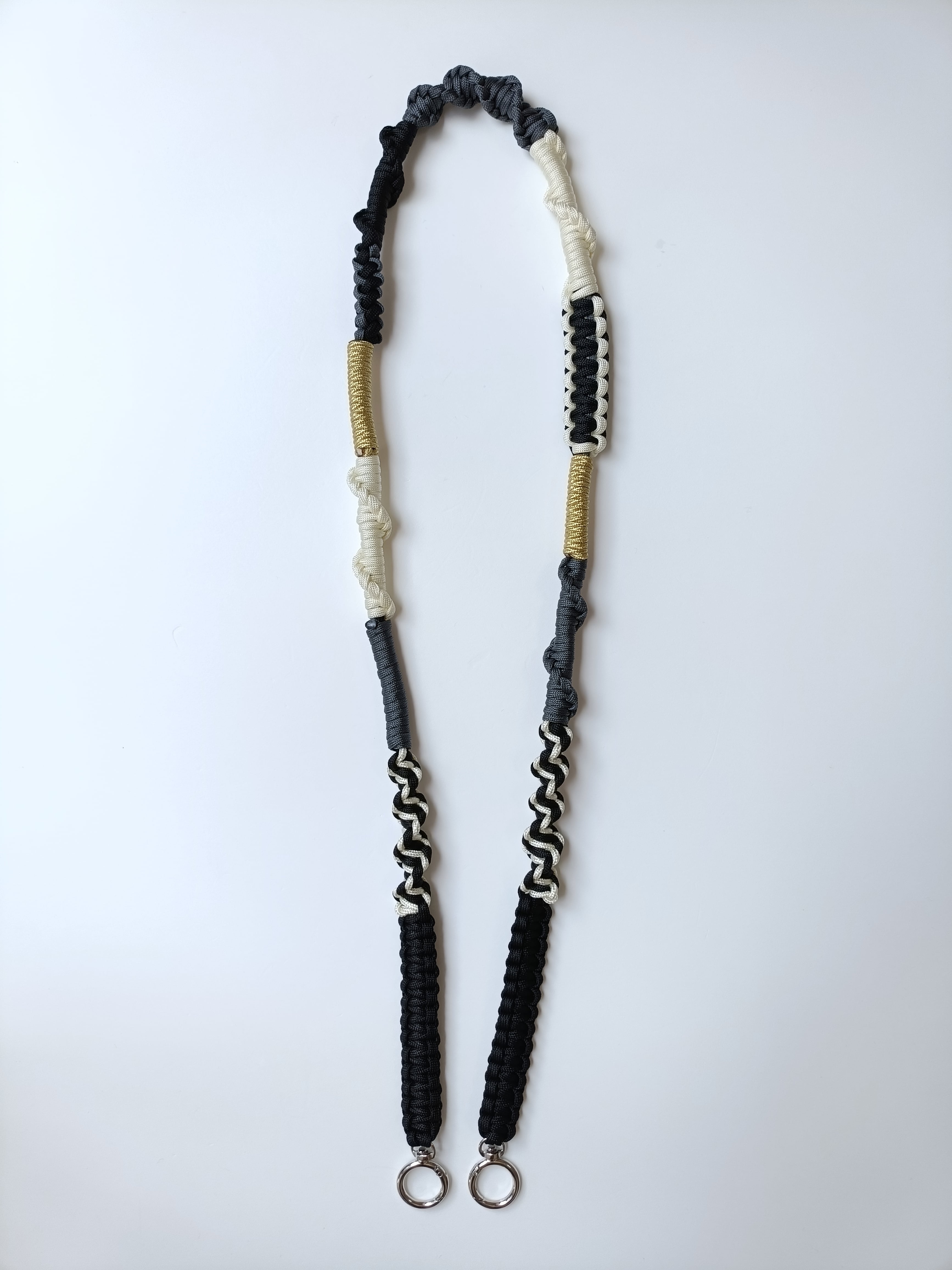 033/スマホショルダー/パラコード/ブラック×クリーム×グレー×ゴールド