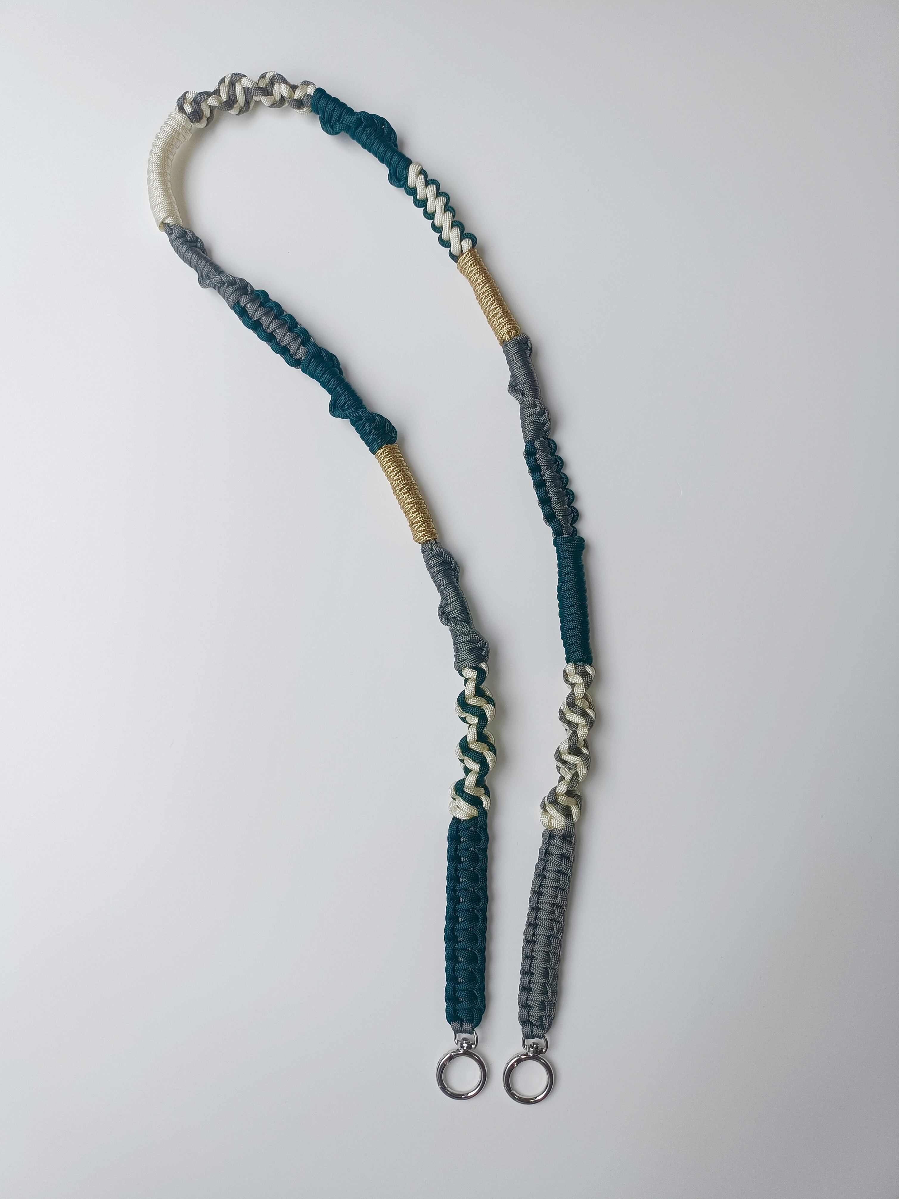 034/スマホショルダー/パラコード/グレー×モスグリーン×ゴールド×クリーム