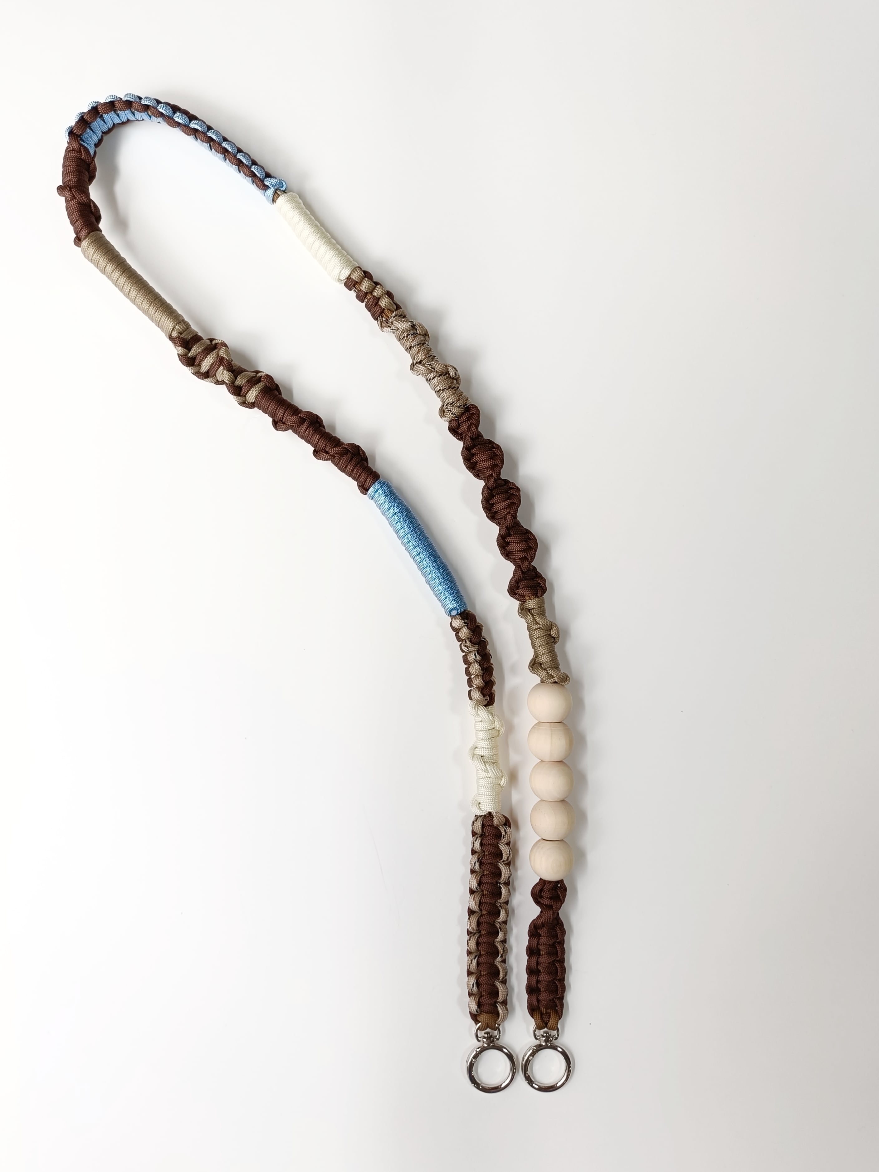 ダークブラウン、ベージュ、スカイブルー×クリームの組み合わせ。ナチュラルなのにどこか洗練された、アクセ感覚の一本です。