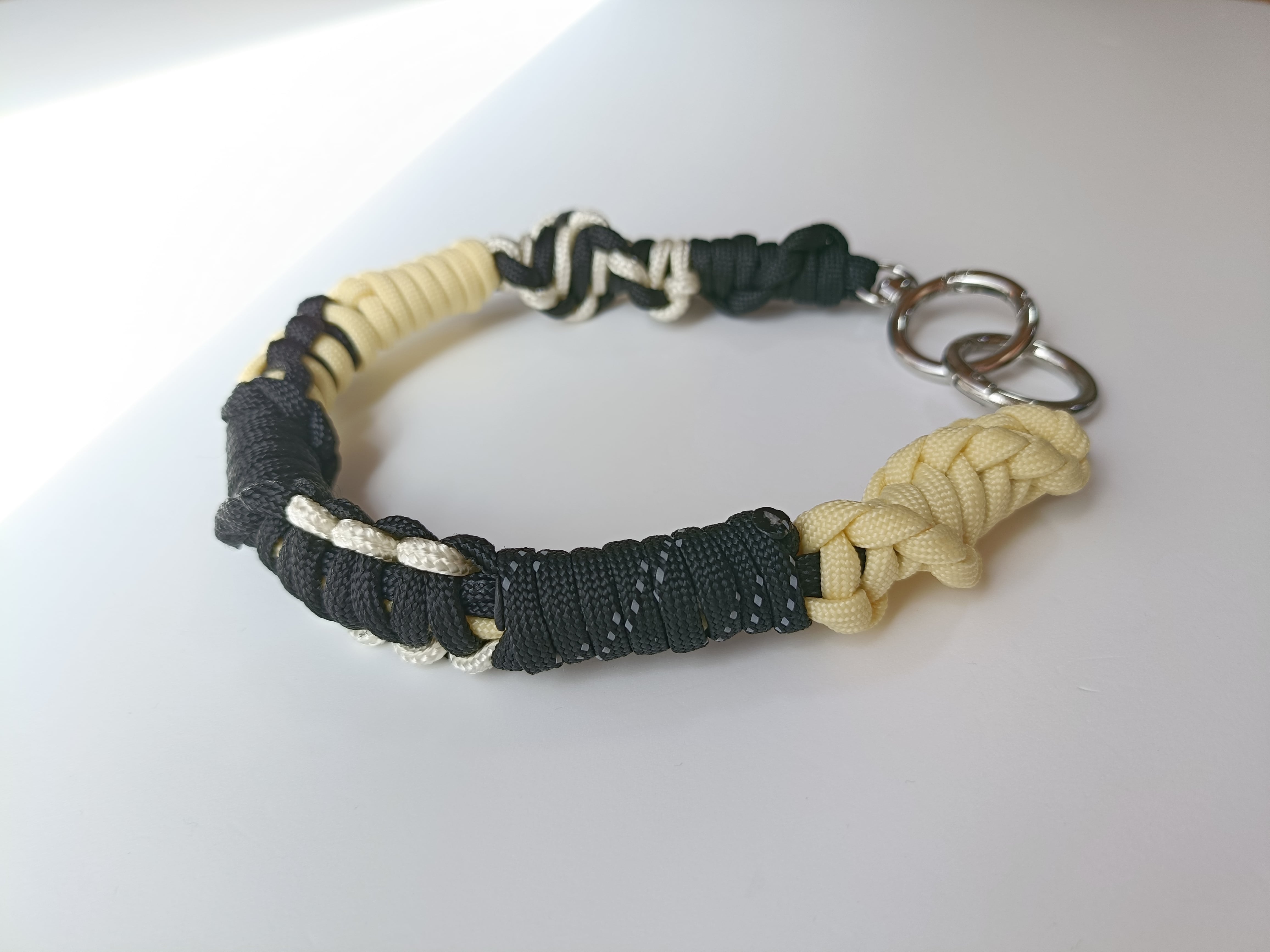 ハンドストラップ017/パラコード/ブラック×クリーム×バターイエロー