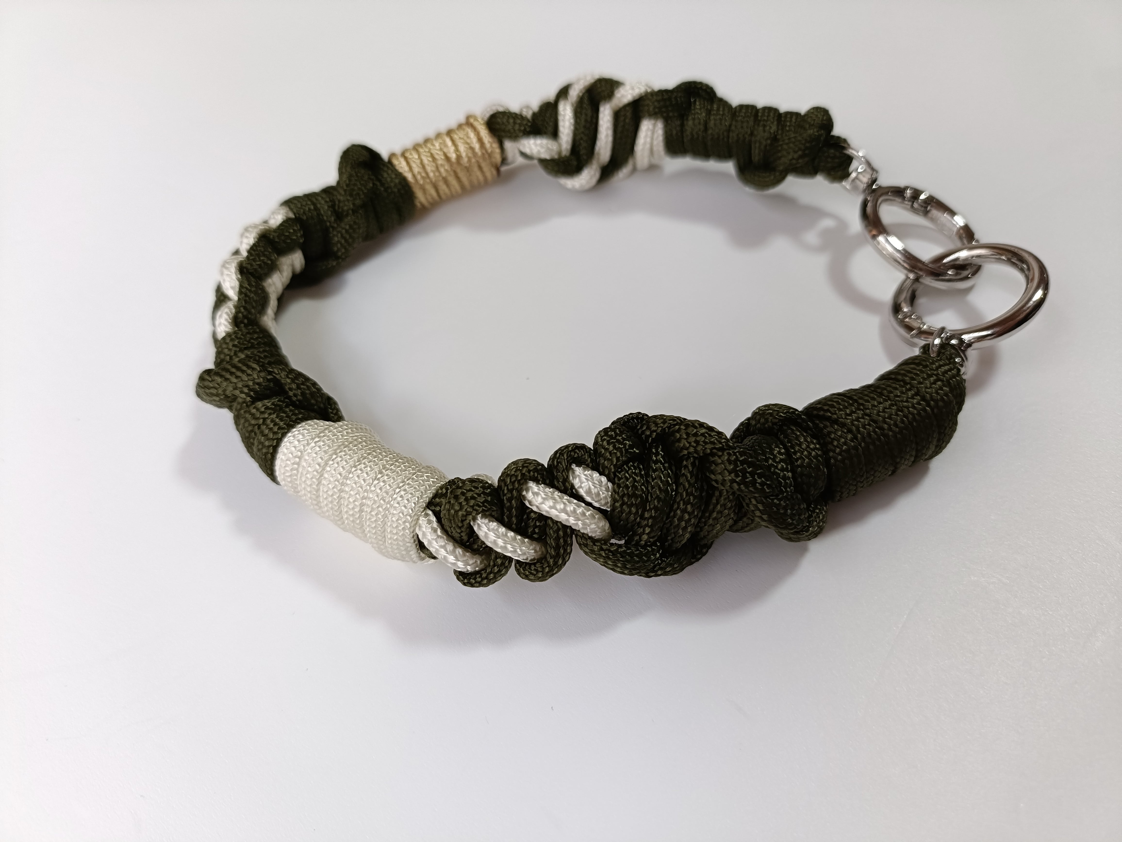 ハンドストラップ019はカーキ×クリーム×ゴールドの組み合わせはシンプルながらもおしゃれな印象を与えてくれるカラーリング。