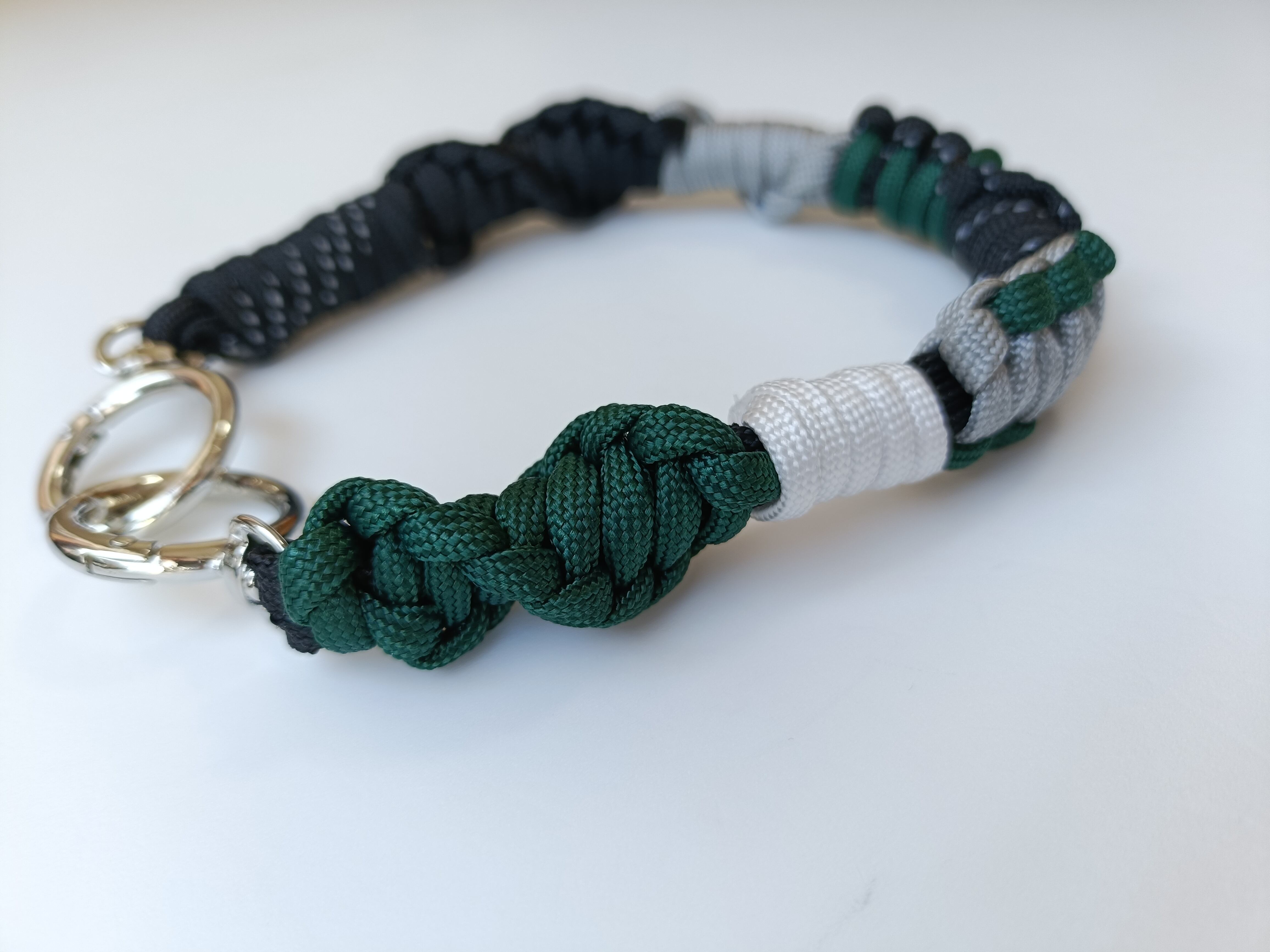 020/ハンドストラップ/パラコード/ブラック×モスグリーン×ライトグレー×ホワイト×ブラックデザイン