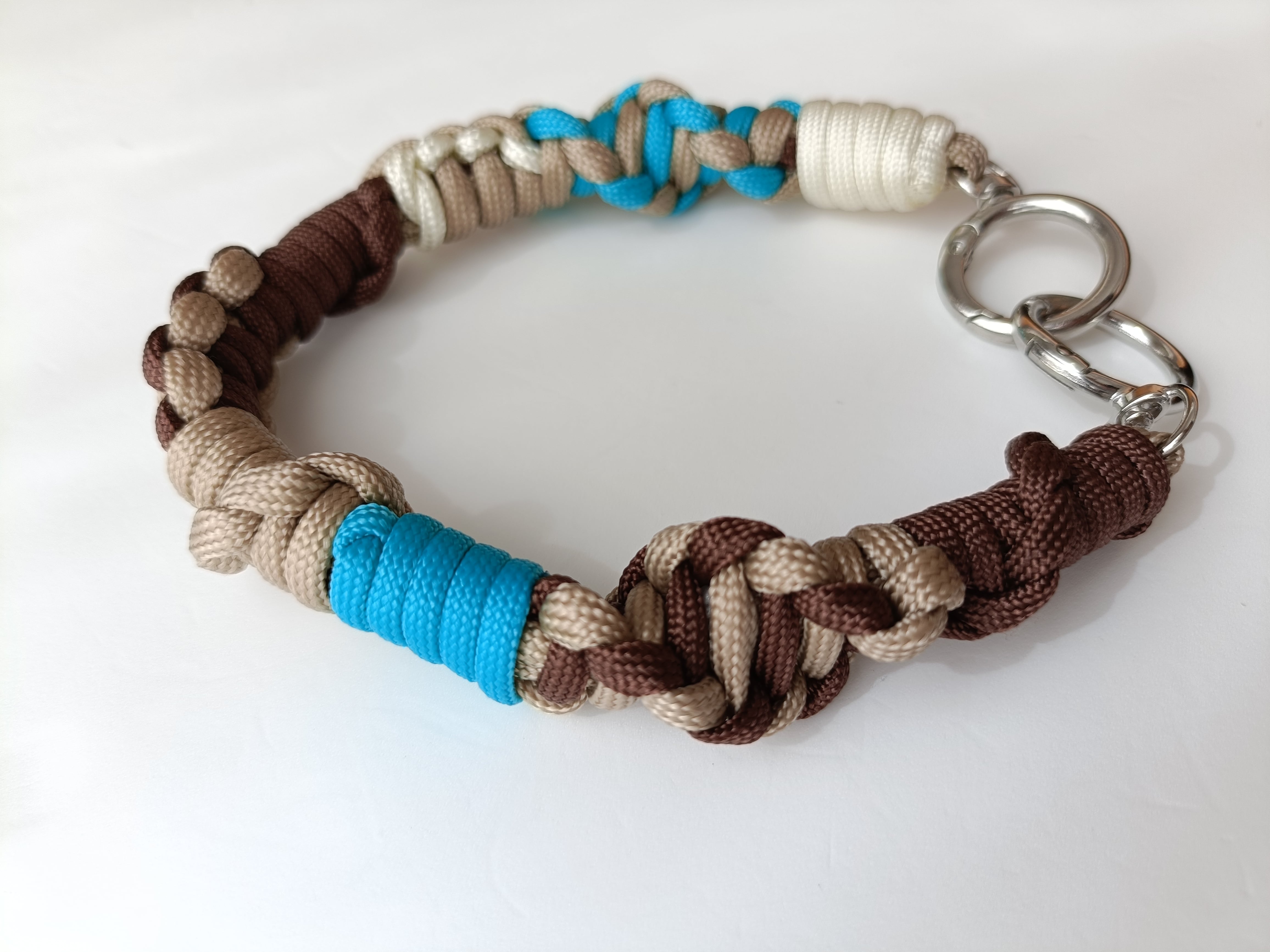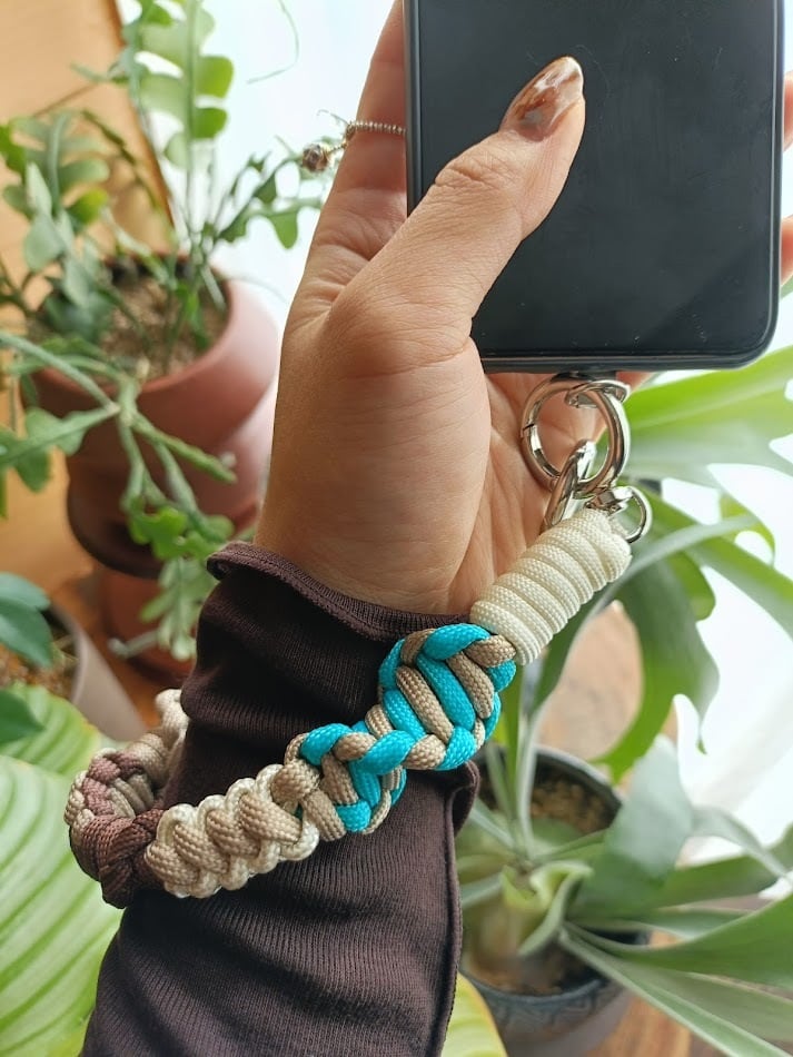 022/ハンドストラップ/パラコード/ターコイズ×ダークブラウン×ベージュ×クリーム