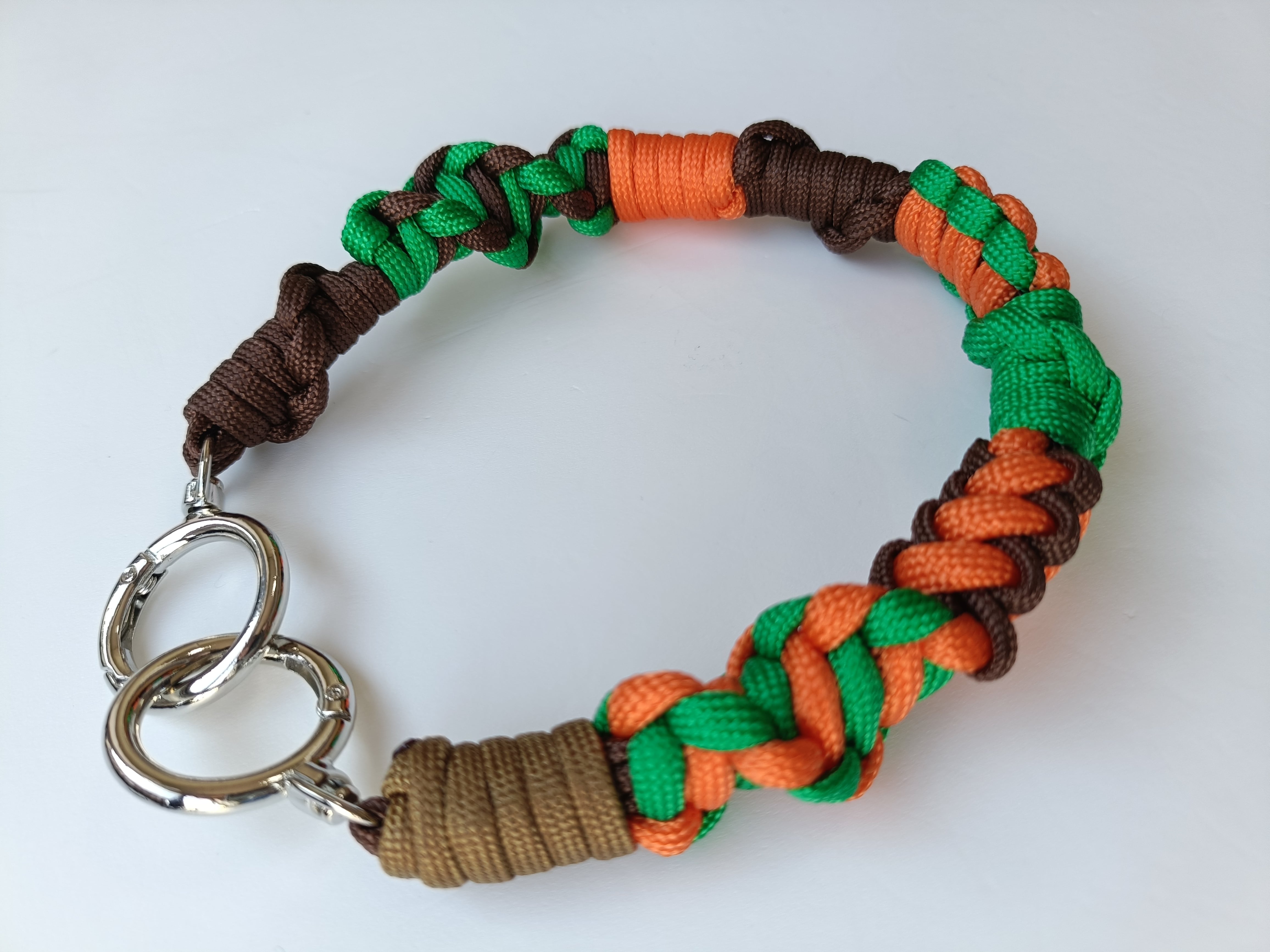030/ハンドストラップ/パラコード/ダークブラウン×グリーン×オレンジ
