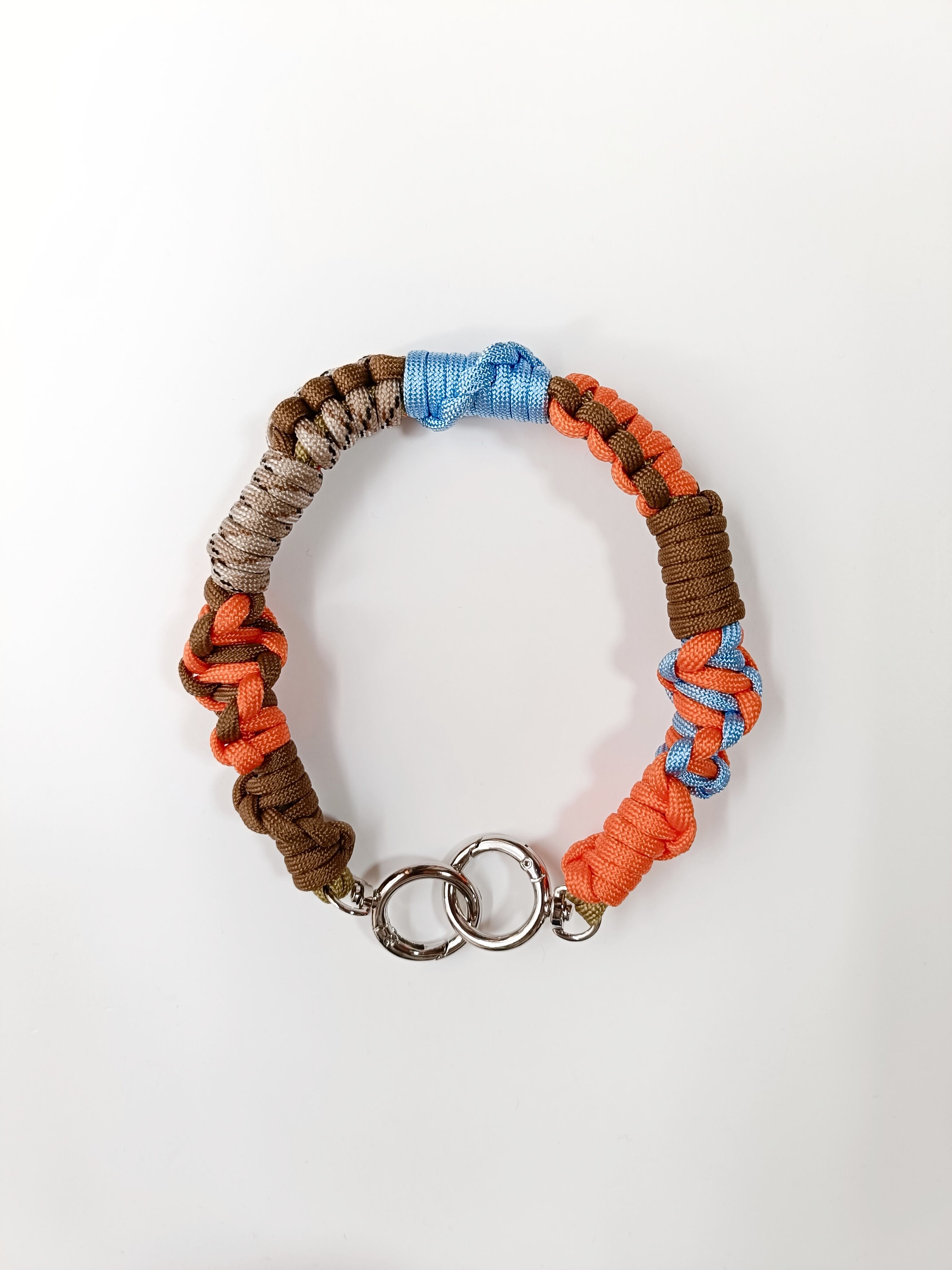 032/ハンドストラップ/パラコード/ブラウン×ベージュデザイン×スカイブルー×オレンジ