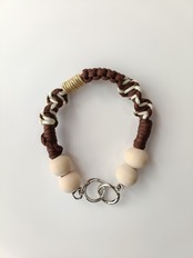 ダークブラウン、クリーム、ゴールド、ウッドビーズの組み合わせはトレンド感もありどんなシーンでもスタイリッシュに演出します。