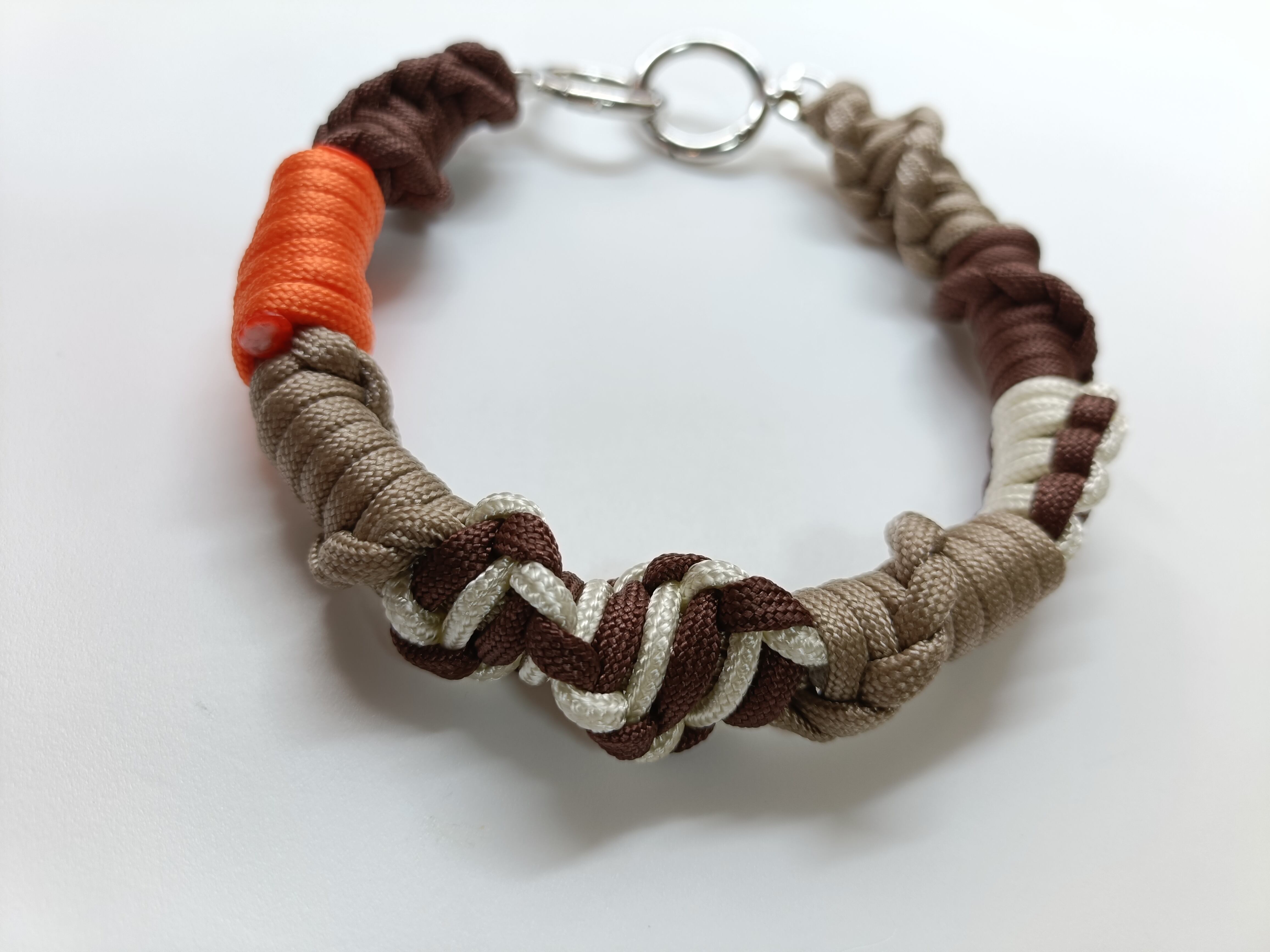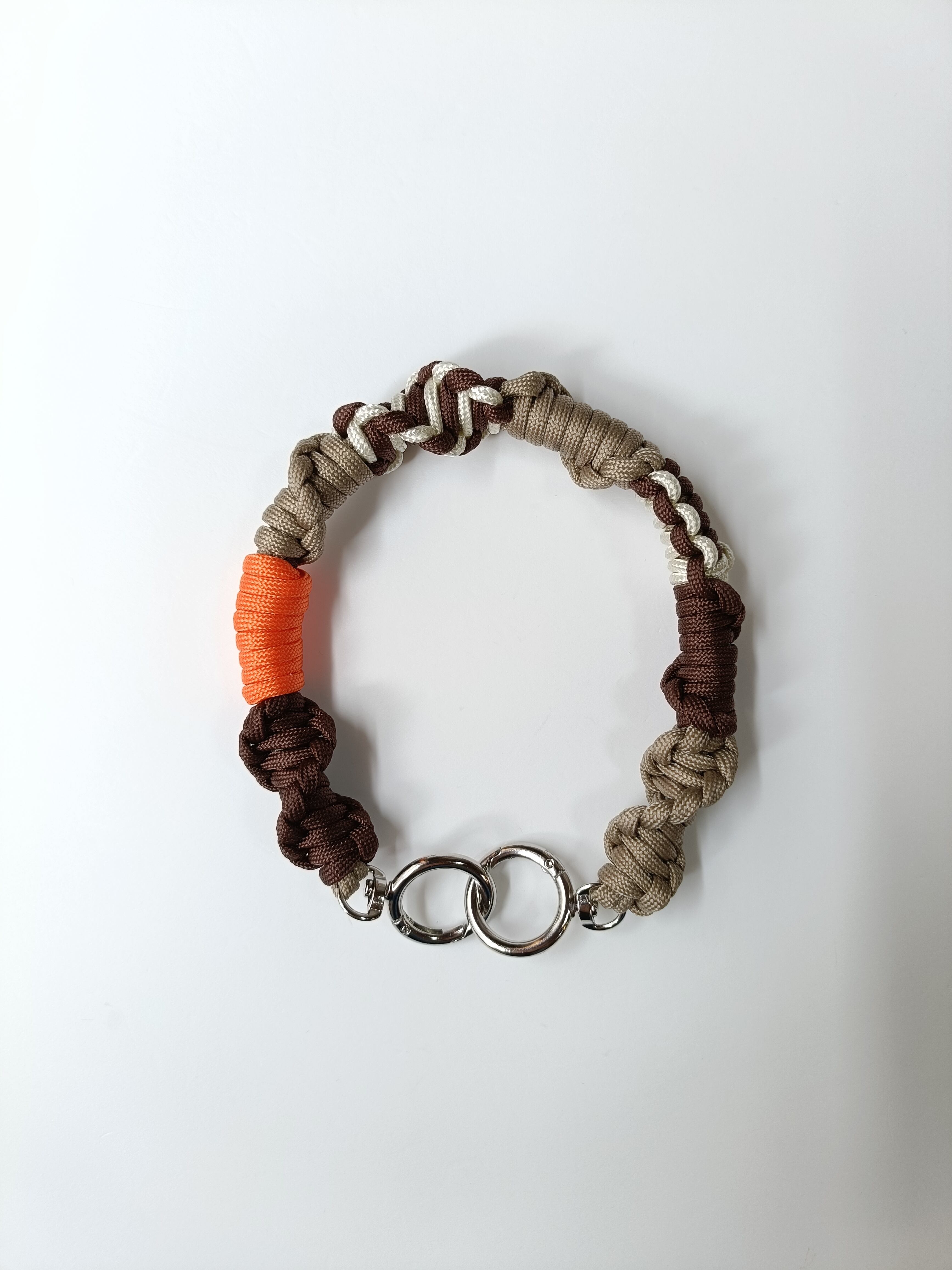 ハンドストラップ016/パラコード/ダークブラウン×オレンジ×ベージュ×クリーム