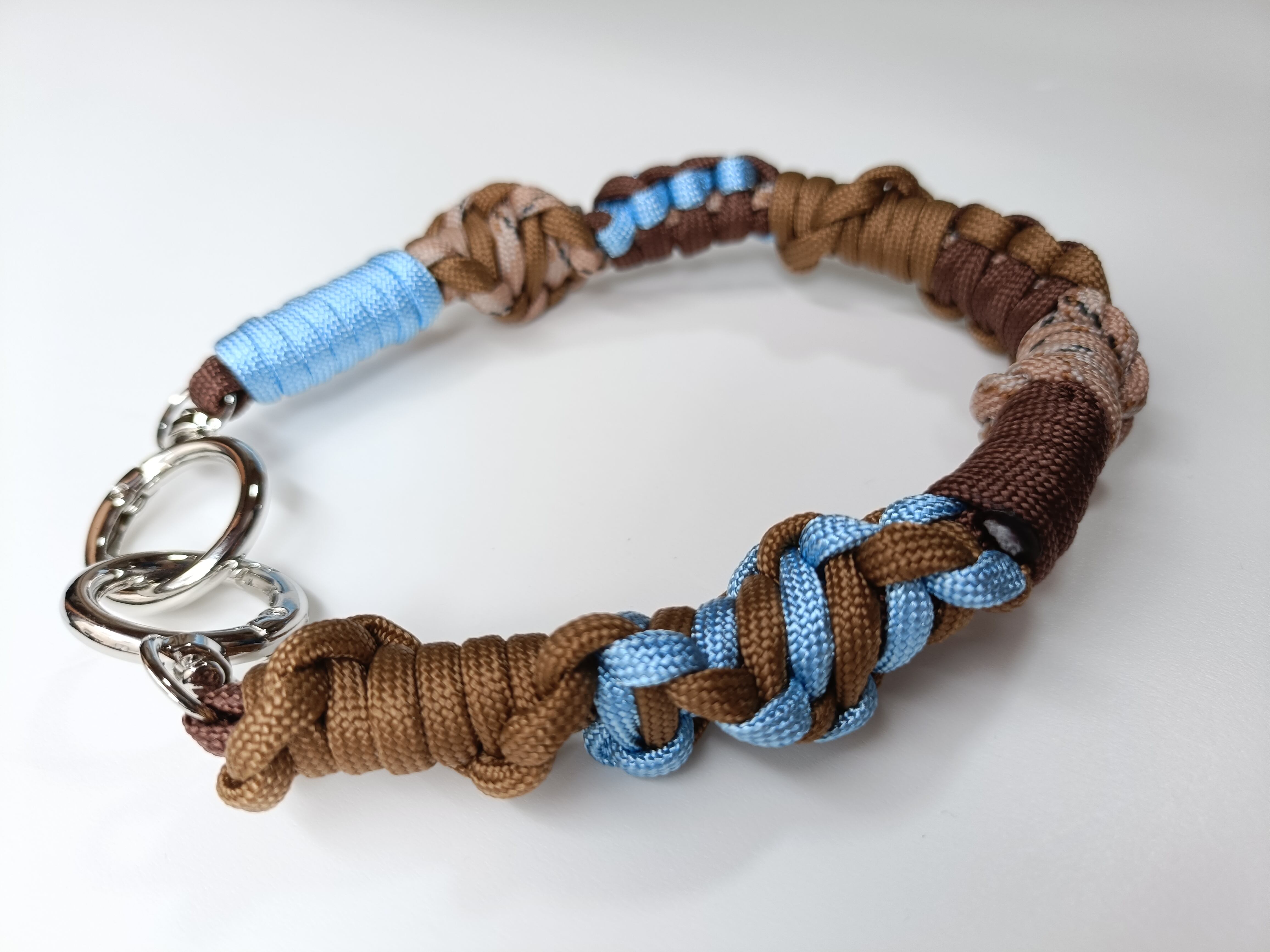 035/ハンドストラップ/パラコード/ブラウン×ダークブラウン×スカイブルー×ベージュデザイン