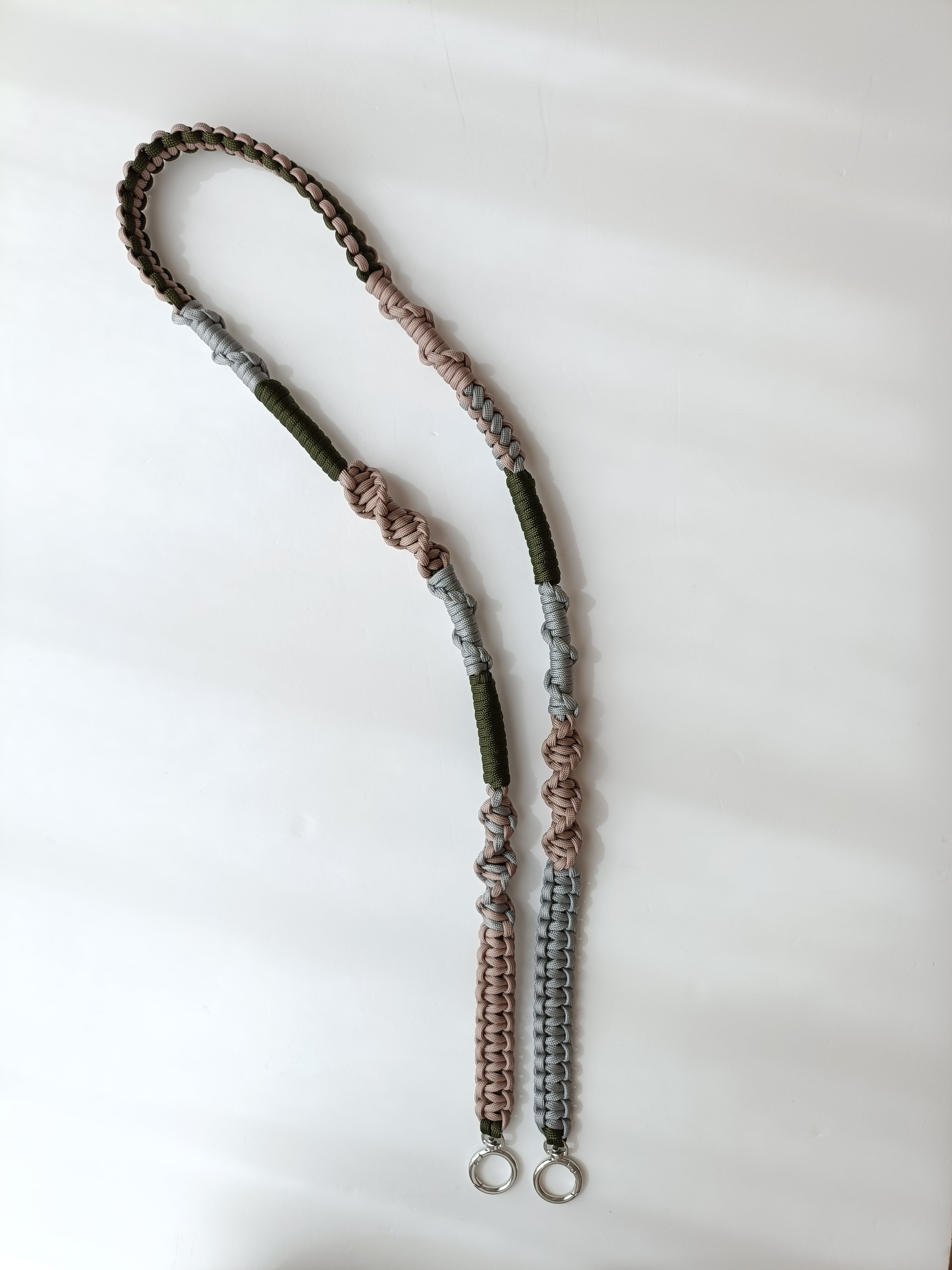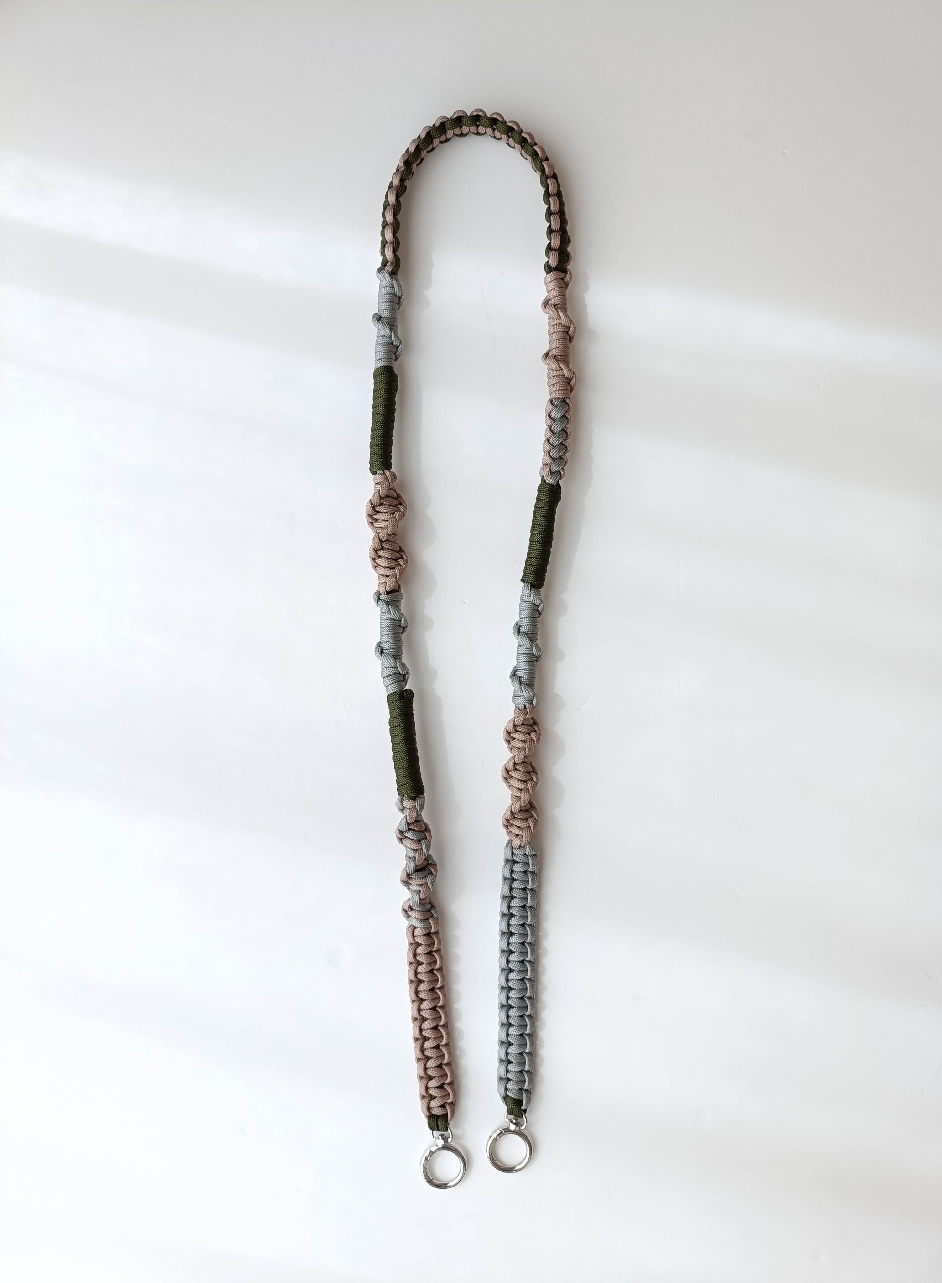 067/スマホショルダー/パラコード/ダスティーピンク×ライトグレー×カーキ