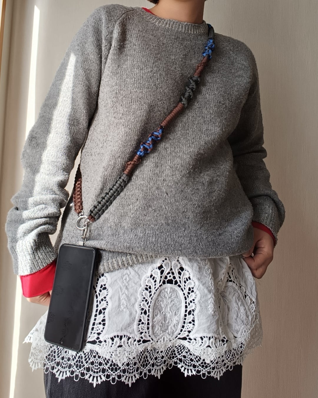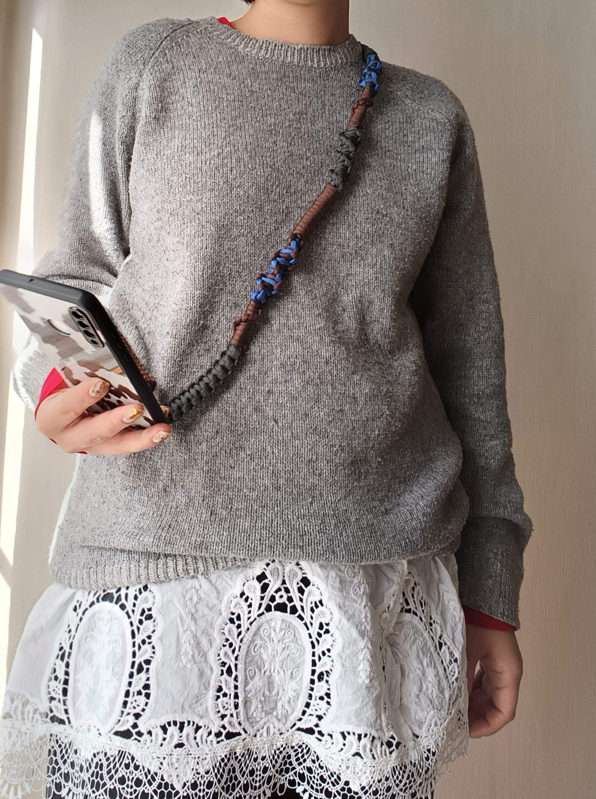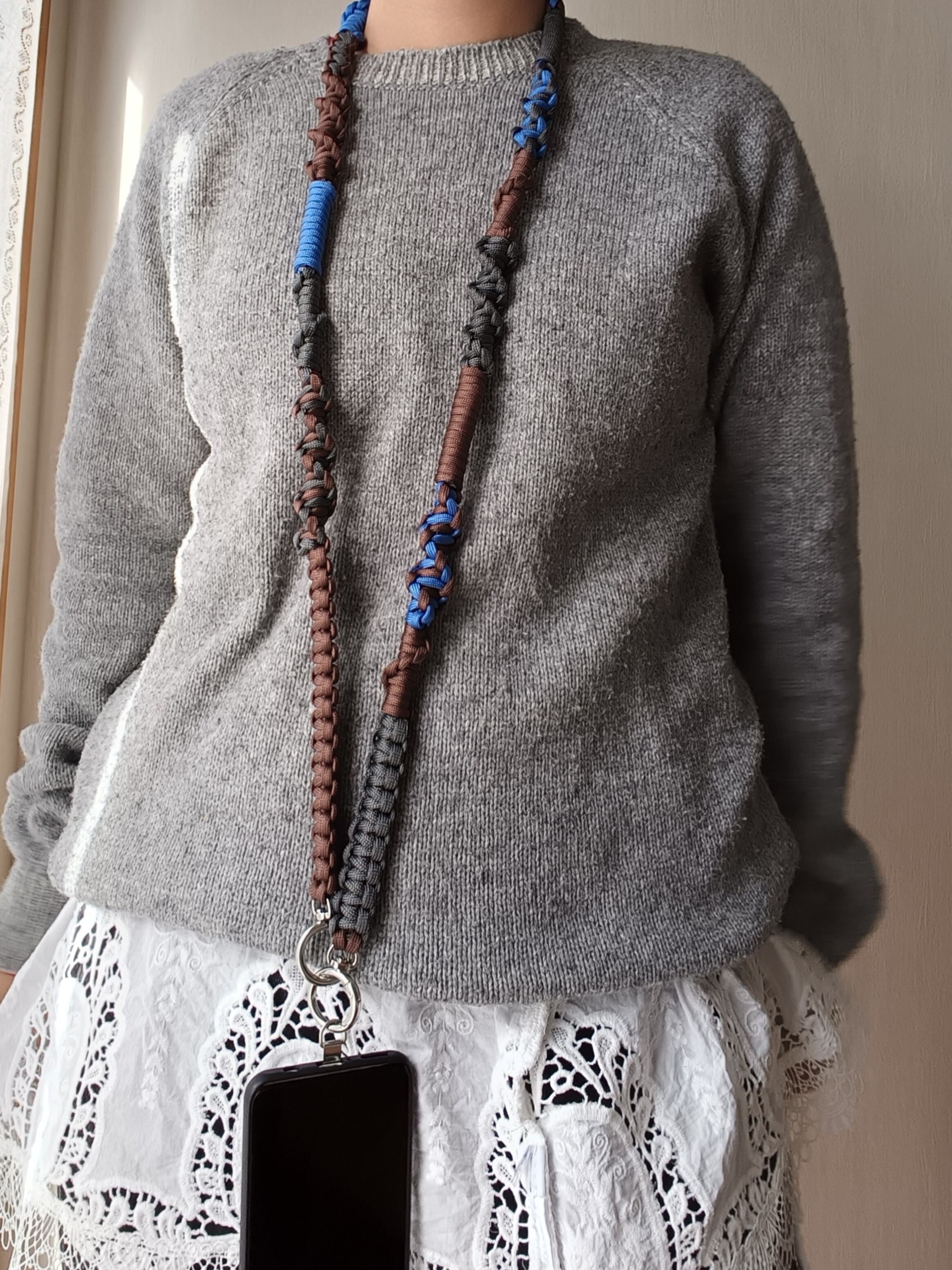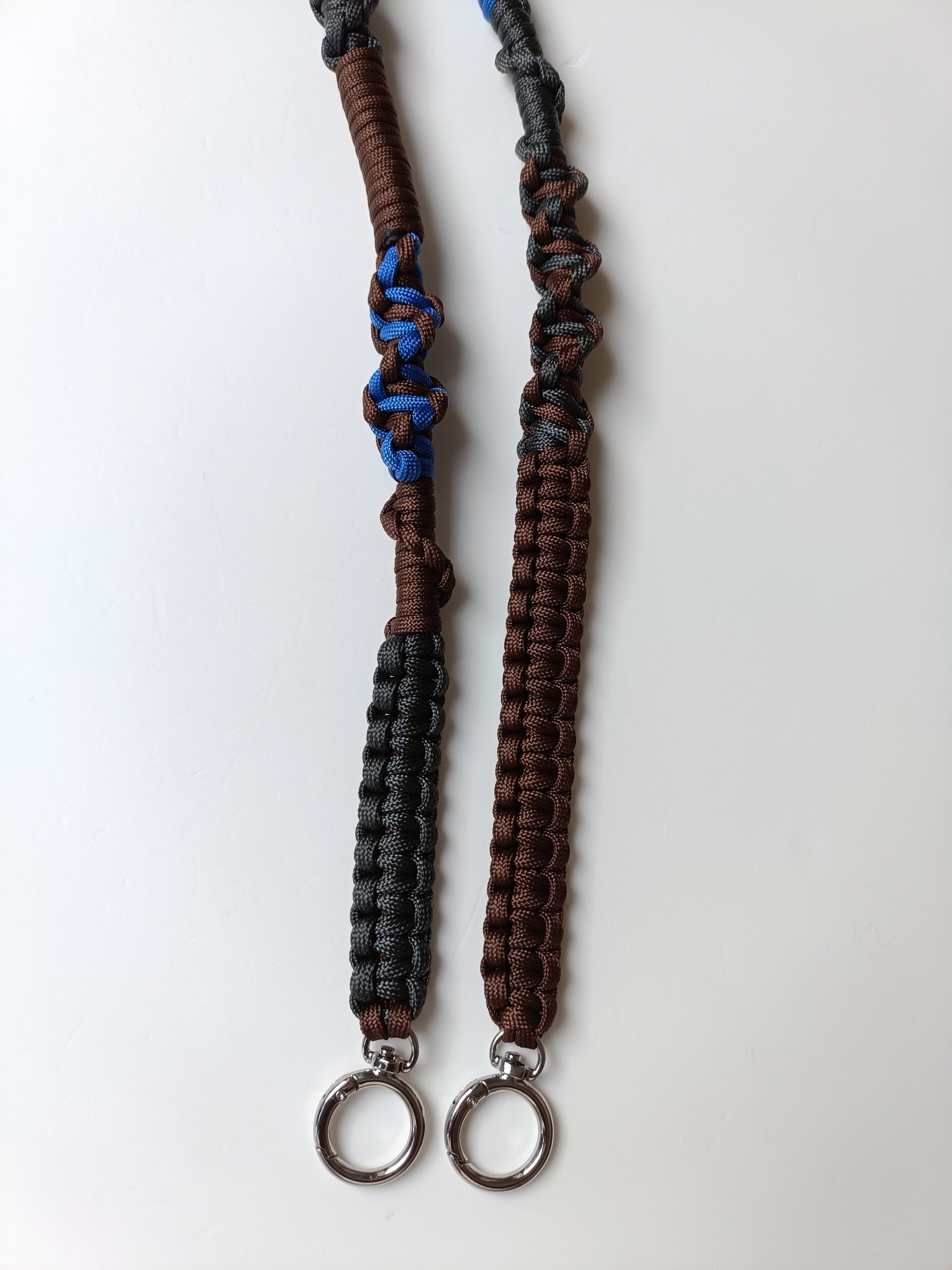 069/スマホショルダー/パラコード/ダークブラウン×グレー×レイクブルー