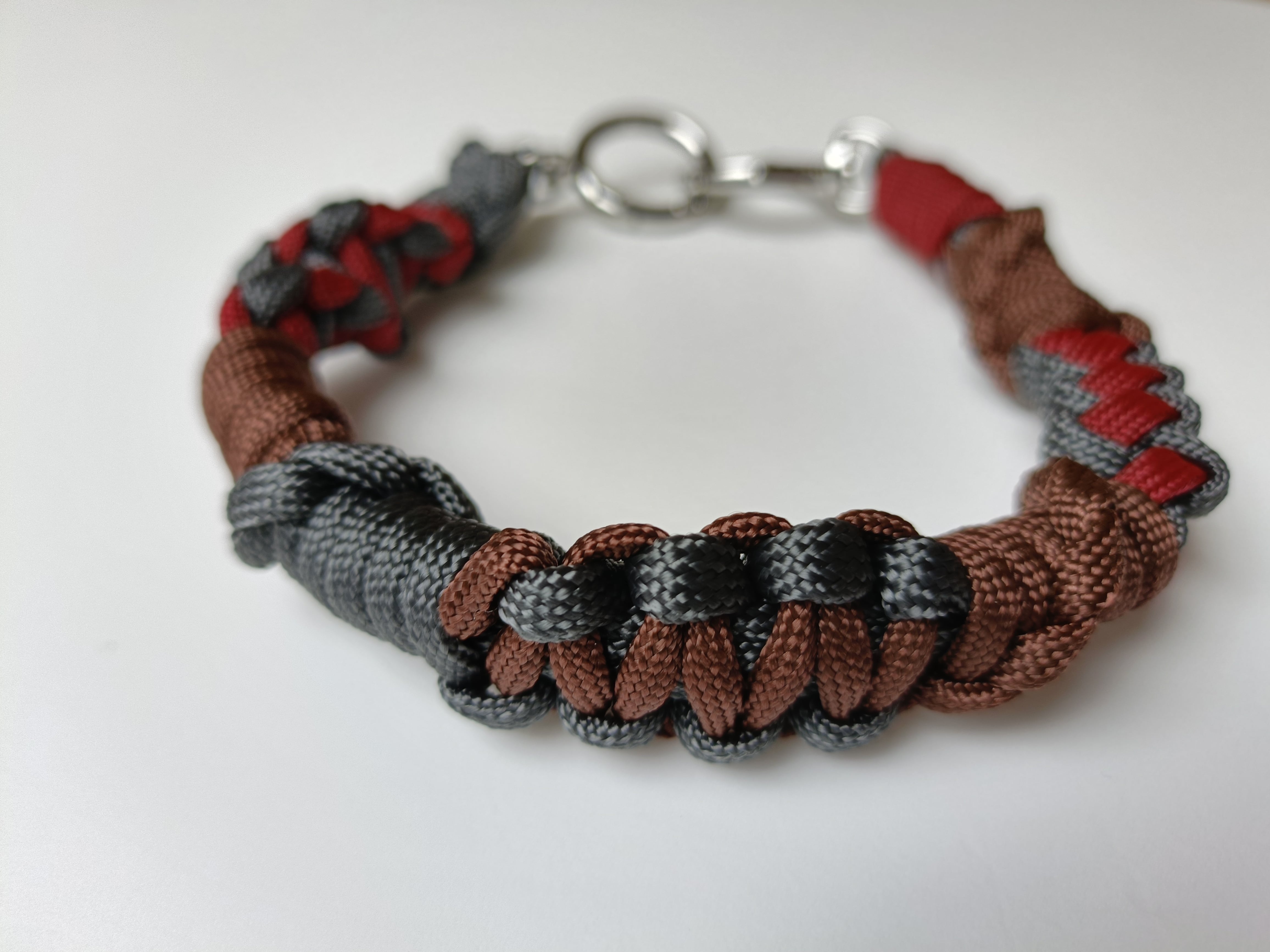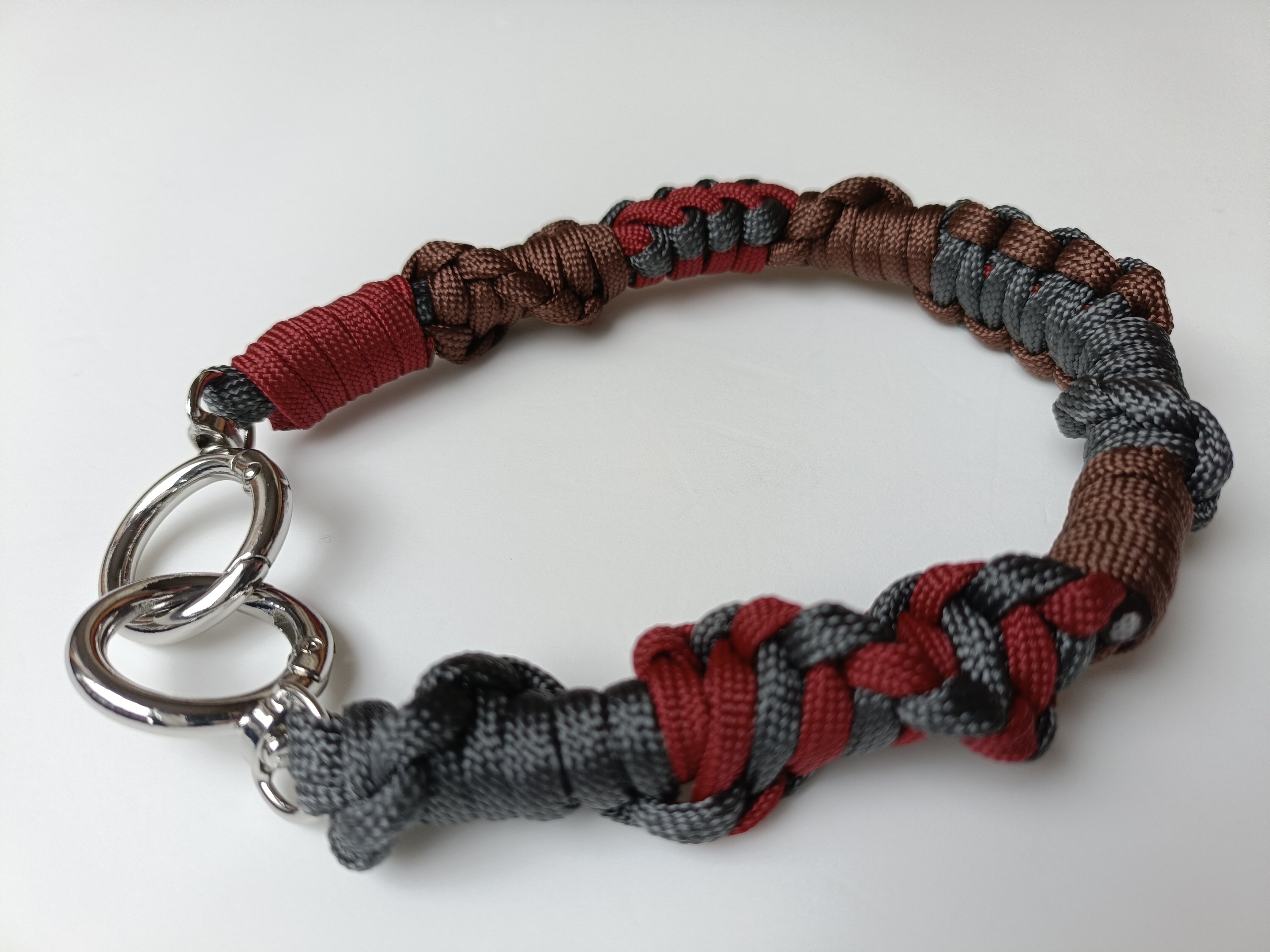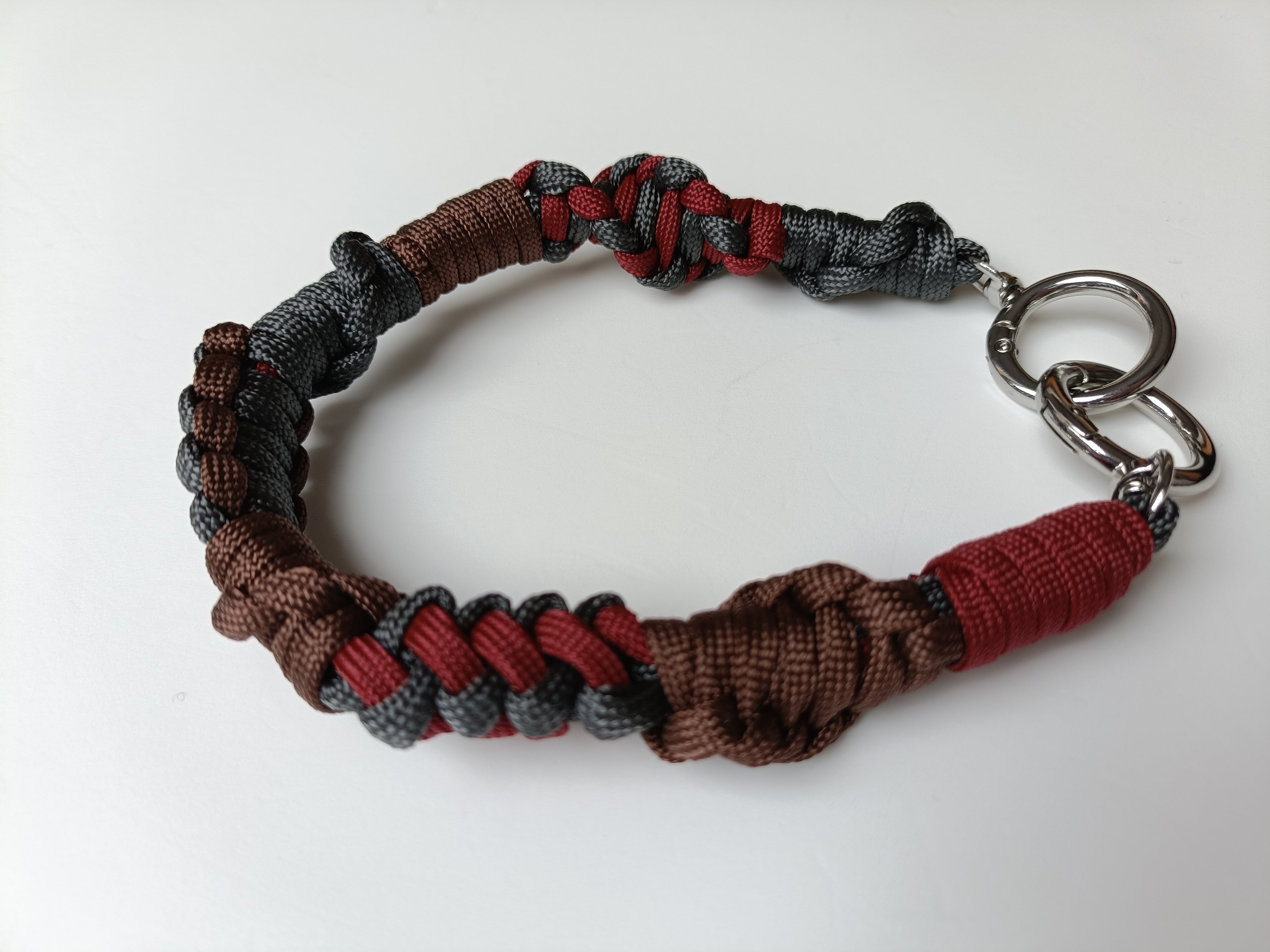 047/ハンドストラップ/パラコード/ダークブラウン×グレー×ボルドー