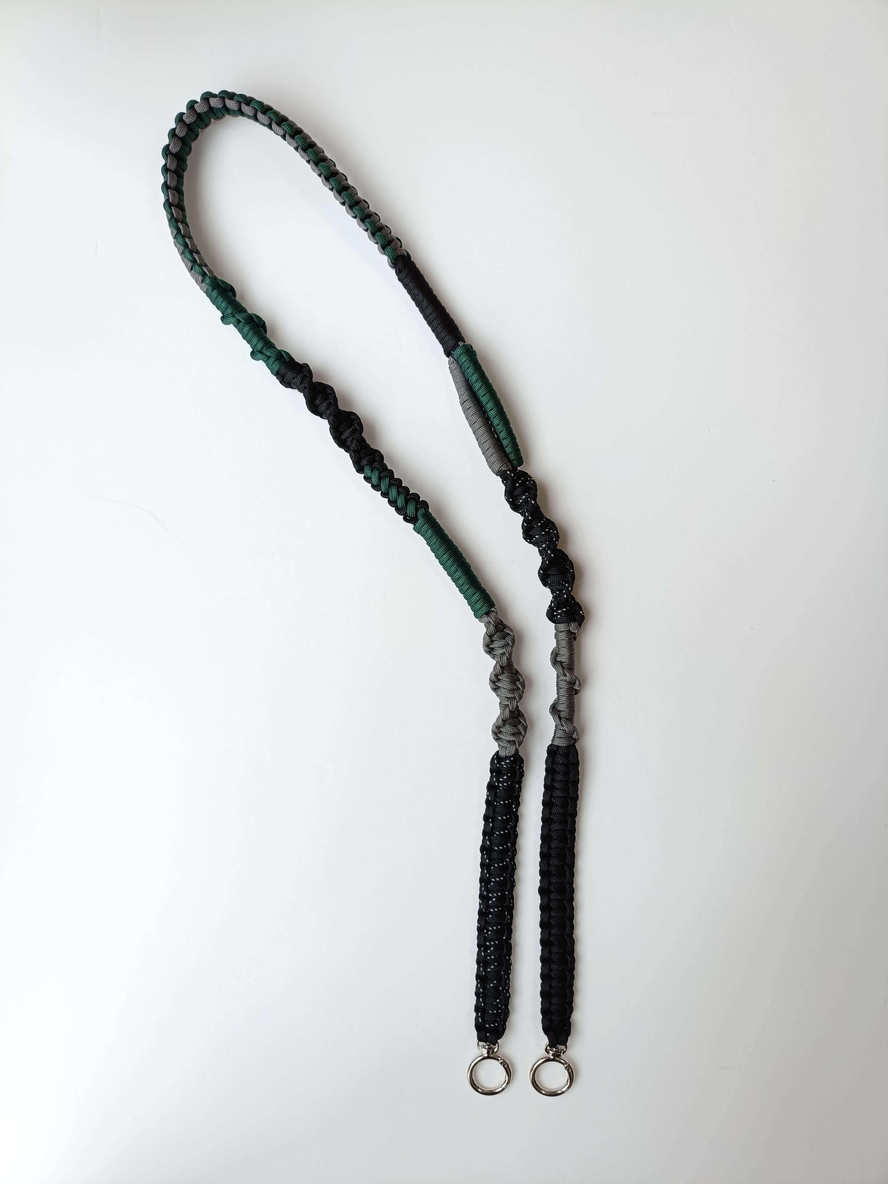 074/高身長向けロング/スマホショルダー/パラコード/フォレストグリーン×グレー×ブラック×ブラックデザイン