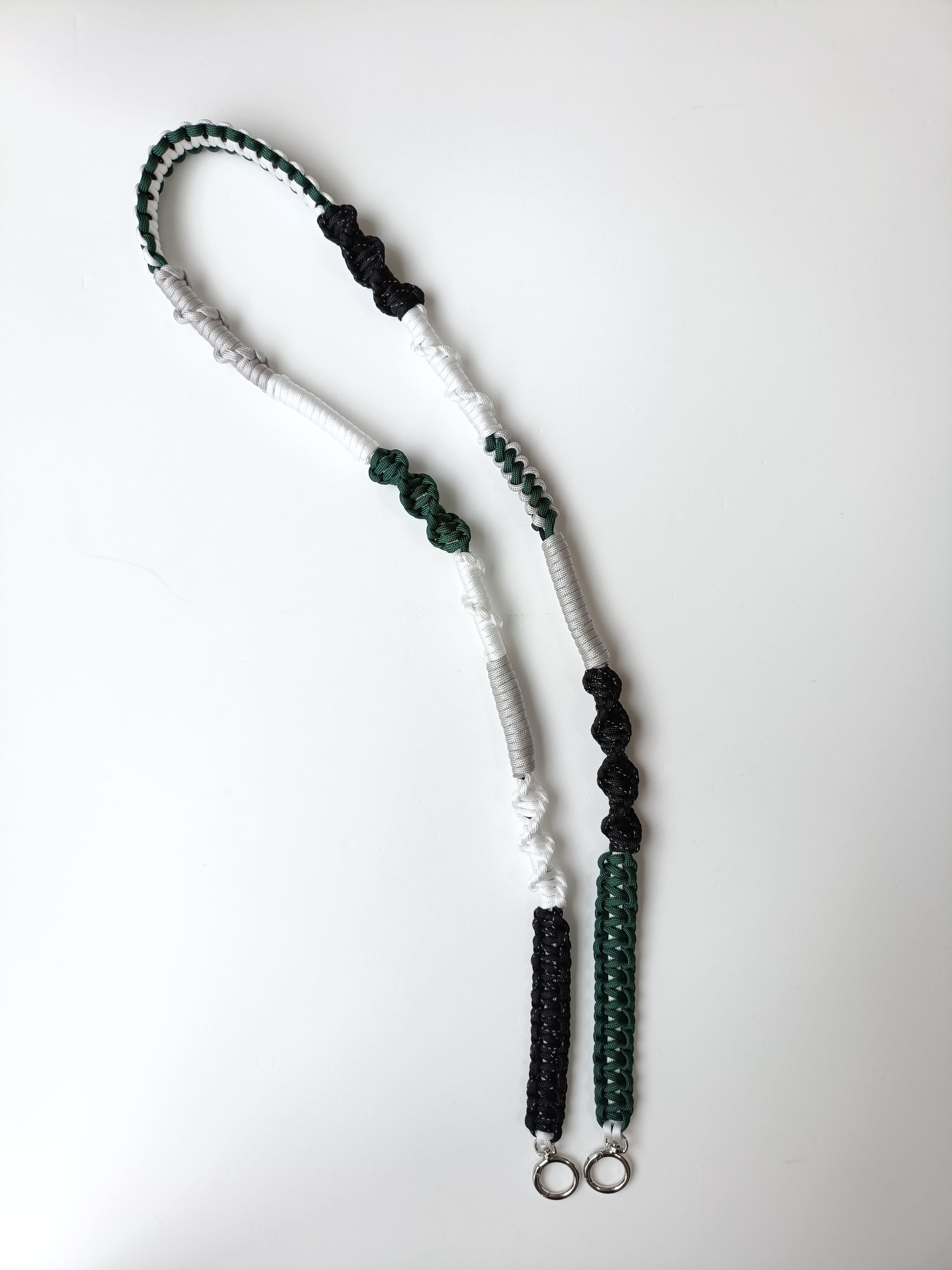 075/高身長向けロング/スマホショルダー/パラコード/フォレストグリーン×ライトグレー×ホワイト×ブラックデザイン