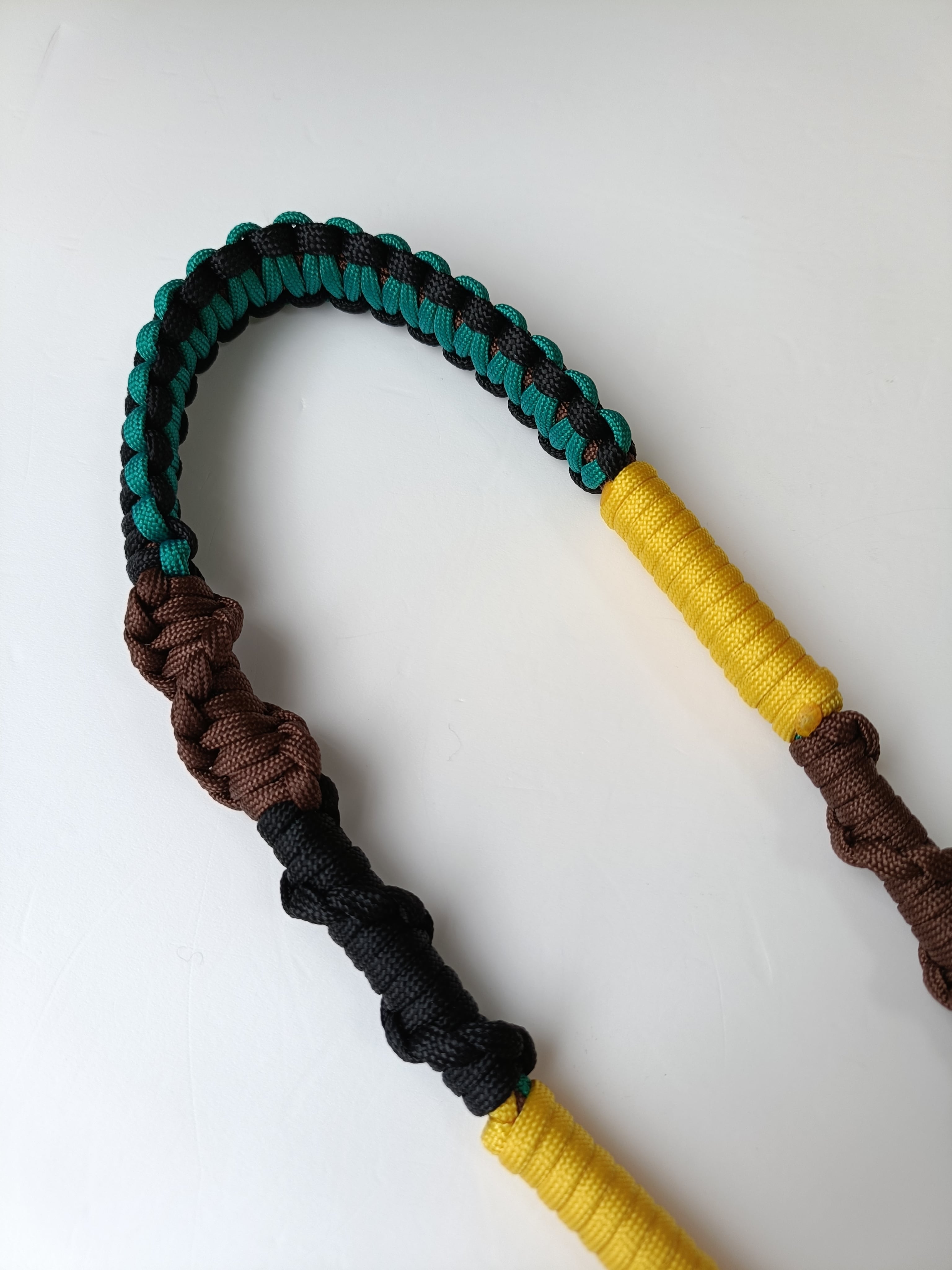 079/高身長向けロング/スマホショルダー/パラコード/ボトルグリーン×イエロー×ブラック×ダークブラウン
