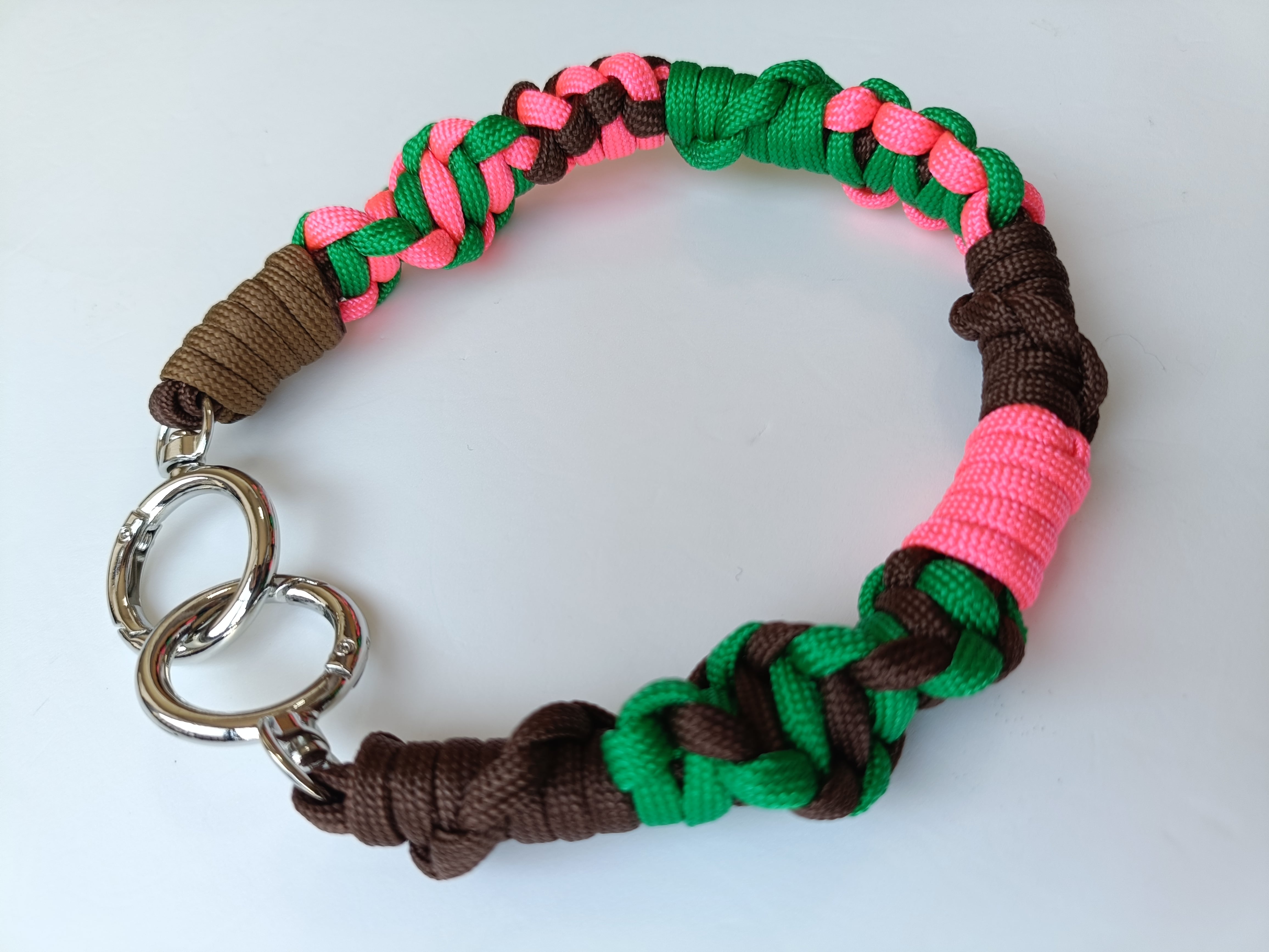 050/ハンドストラップ/パラコード/ダークブラウン×グリーン×ピンク