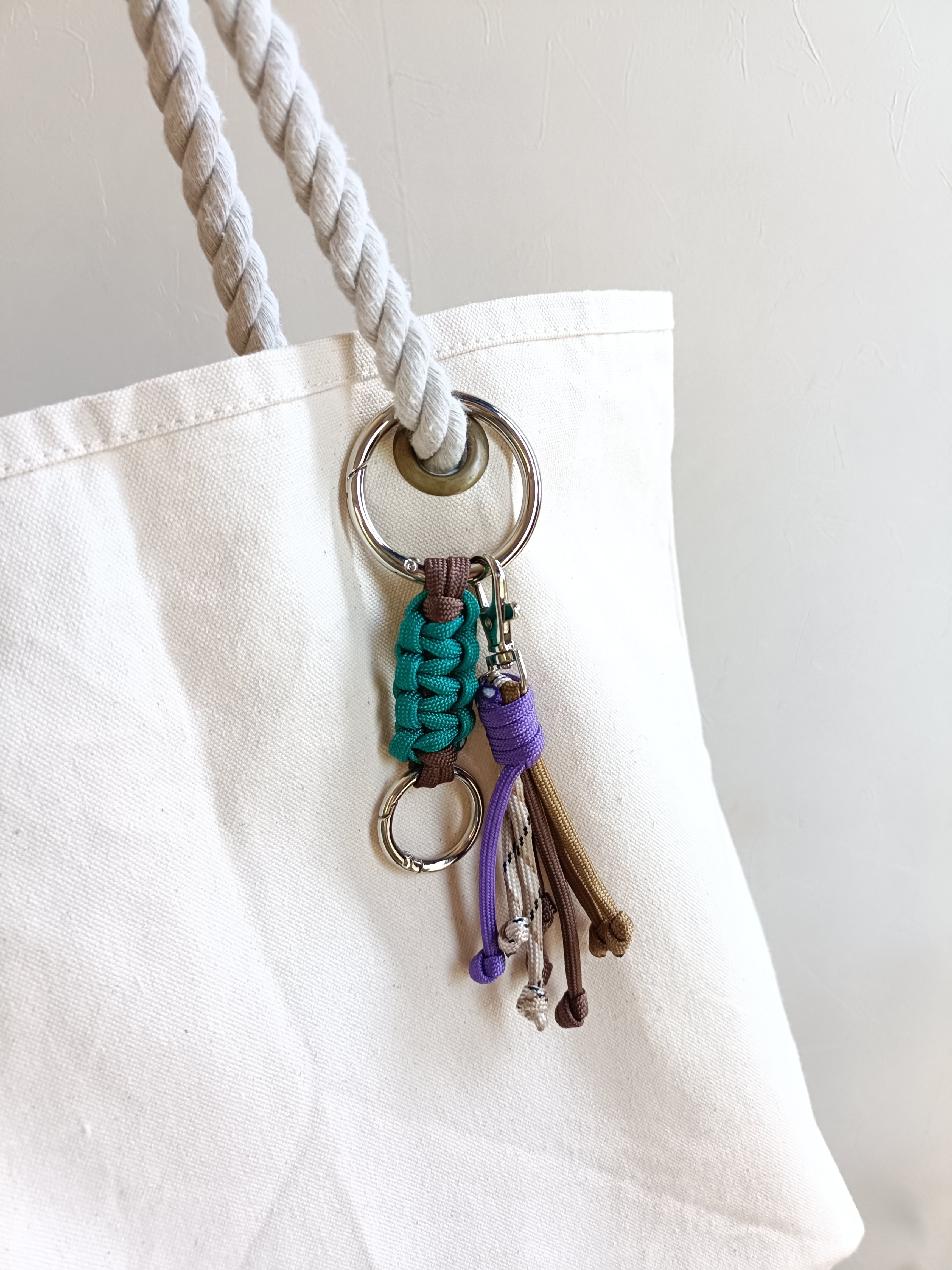キーリング/パラコード/ターコイズ×ショッキングピンク×ダークブラウン×デザインベージュ