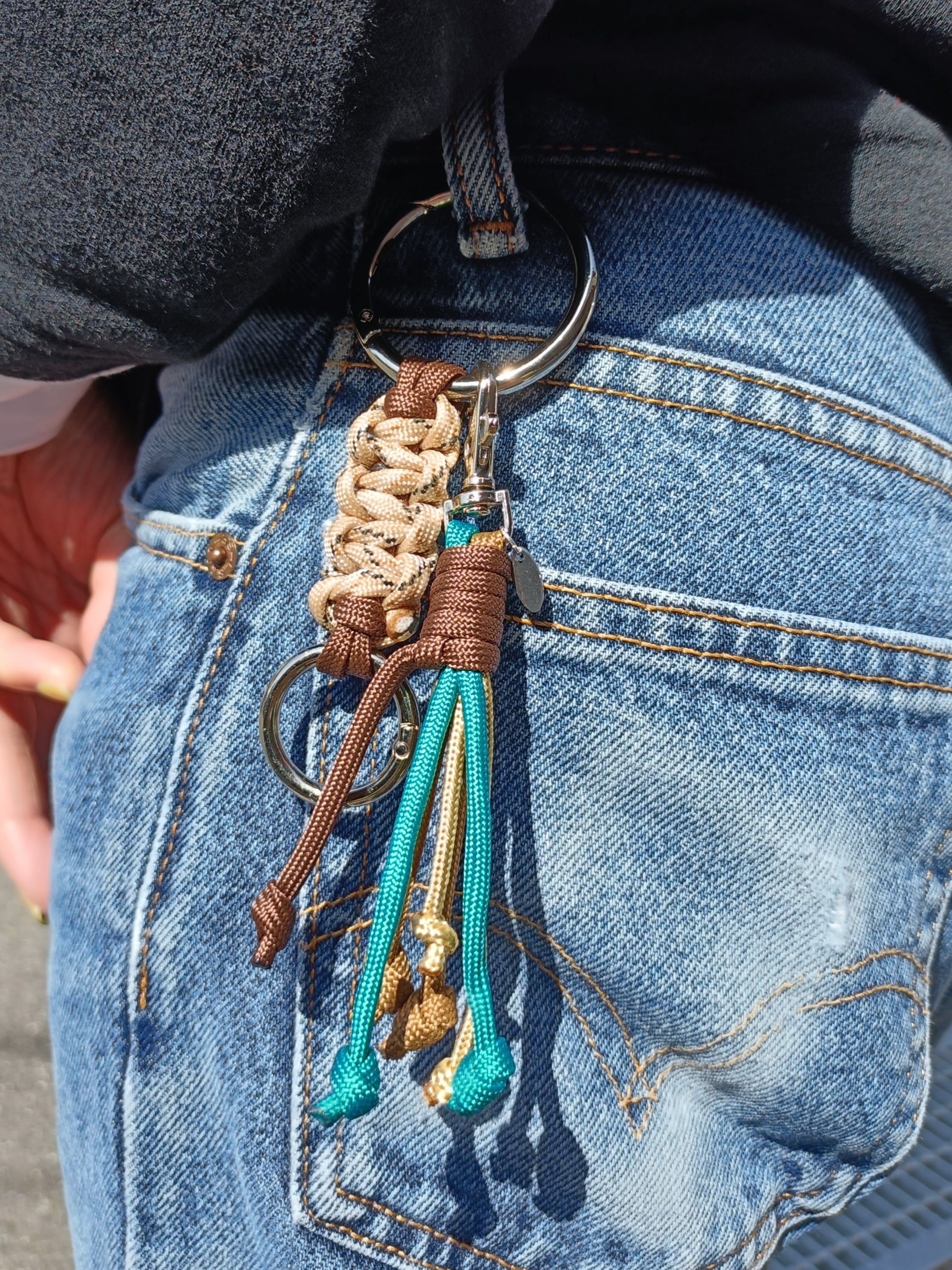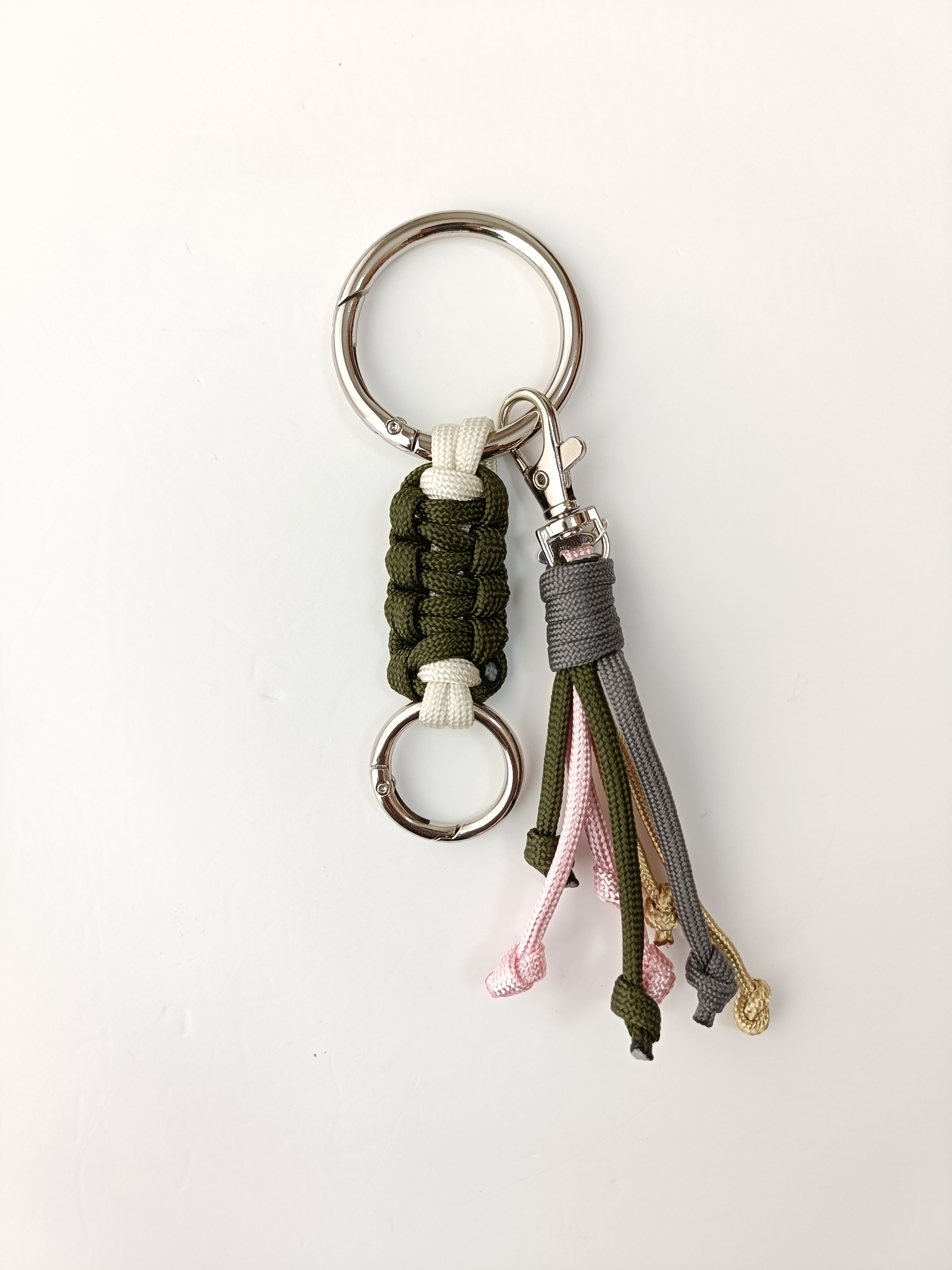 キーリング/パラコード/カーキ×グレー×ライトピンク×ゴールド