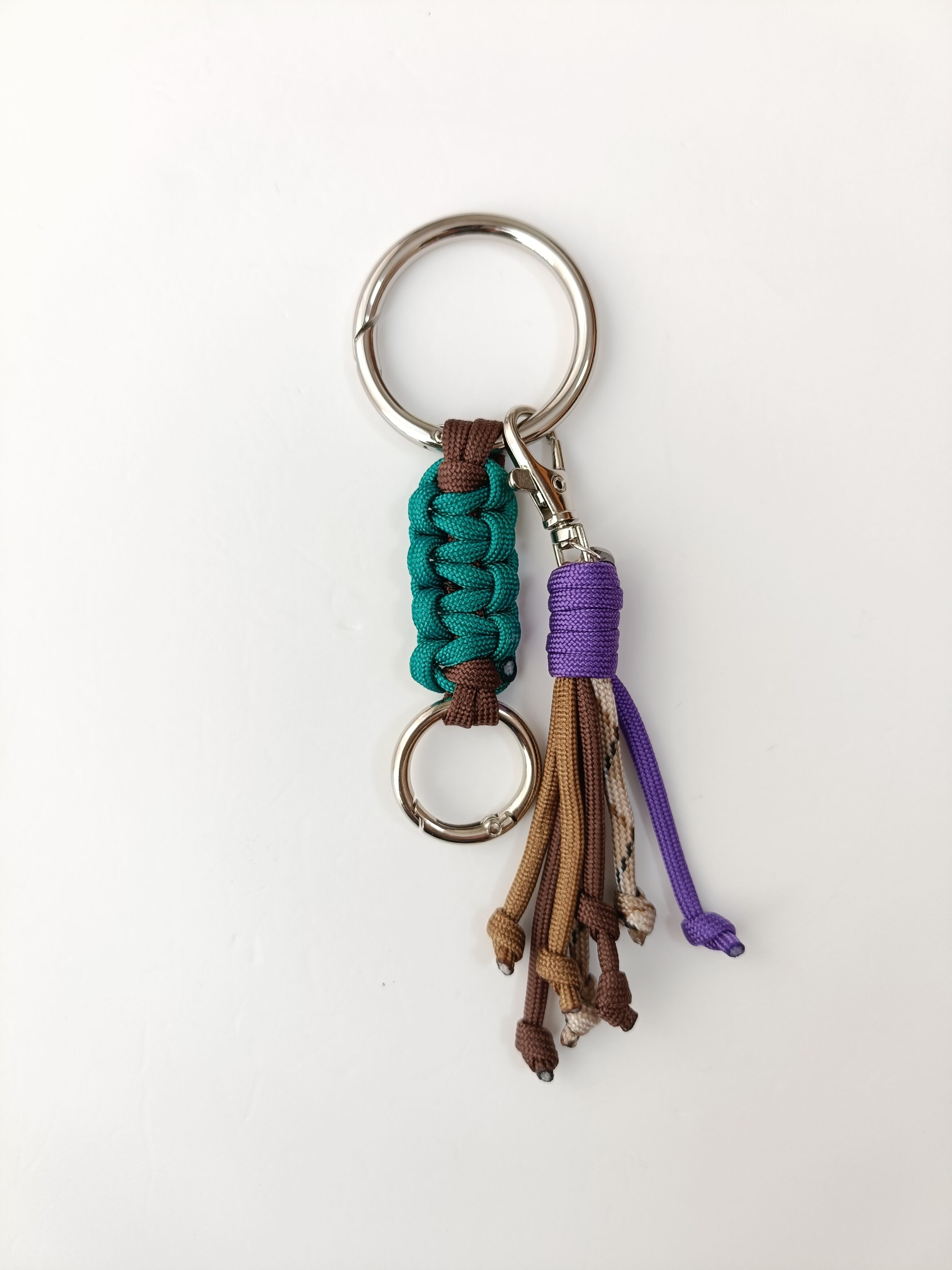 キーリング/パラコード/グリーン×パープル×デザインベージュ×ダークブラウン