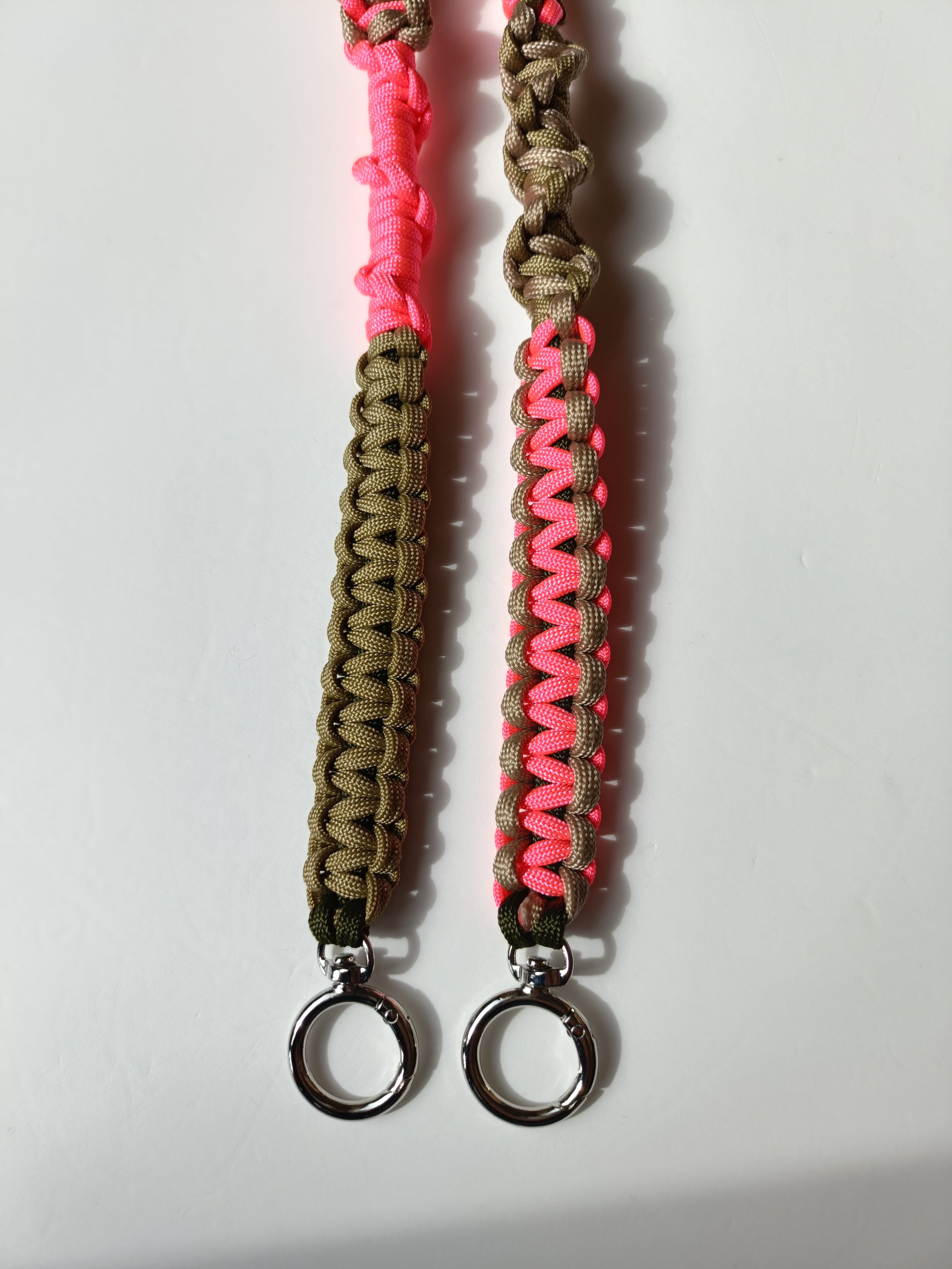 007/スマホショルダー/パラコード/ショッキングピンク×カーキ×ベージュ×カーキベージュ