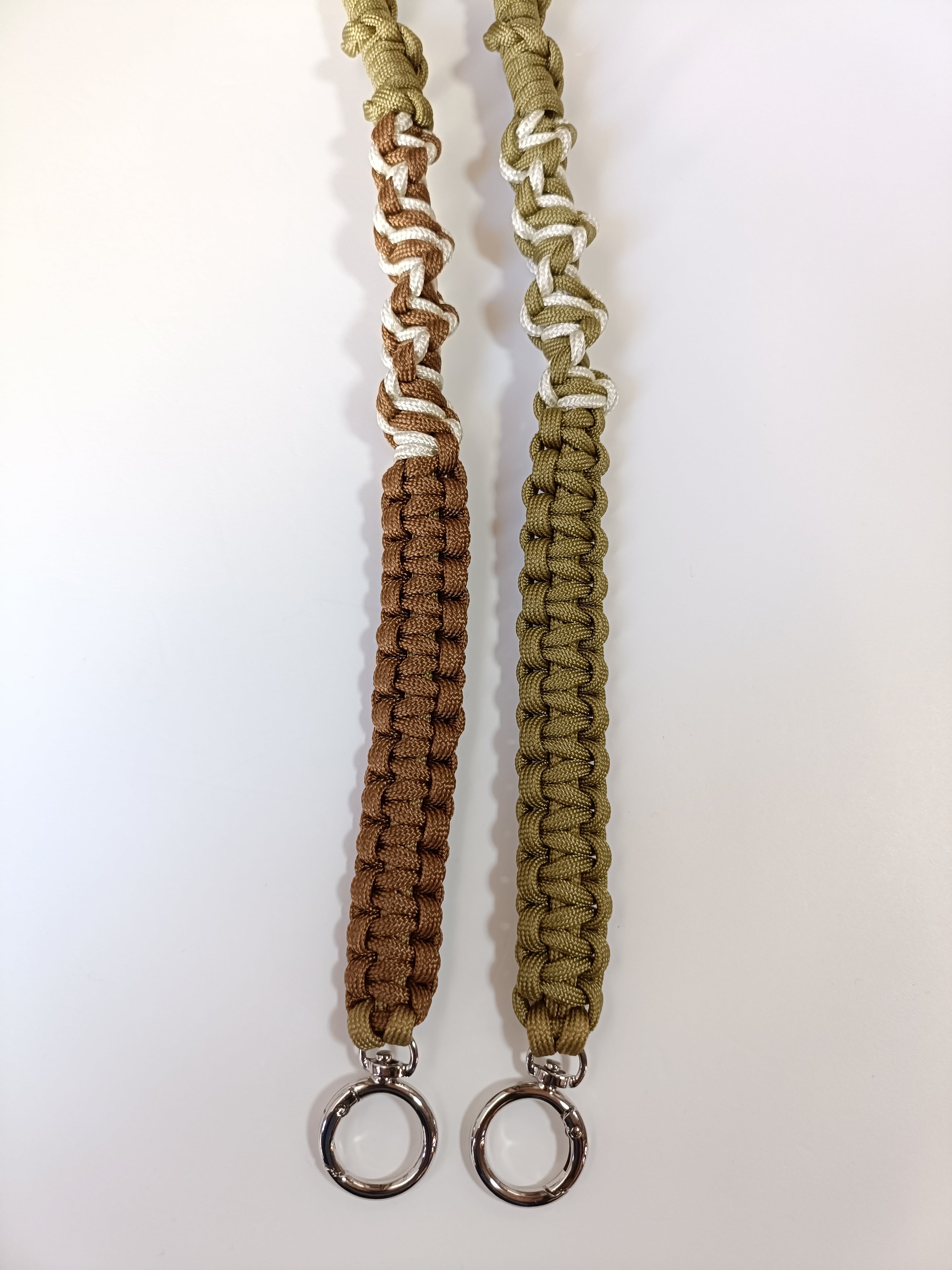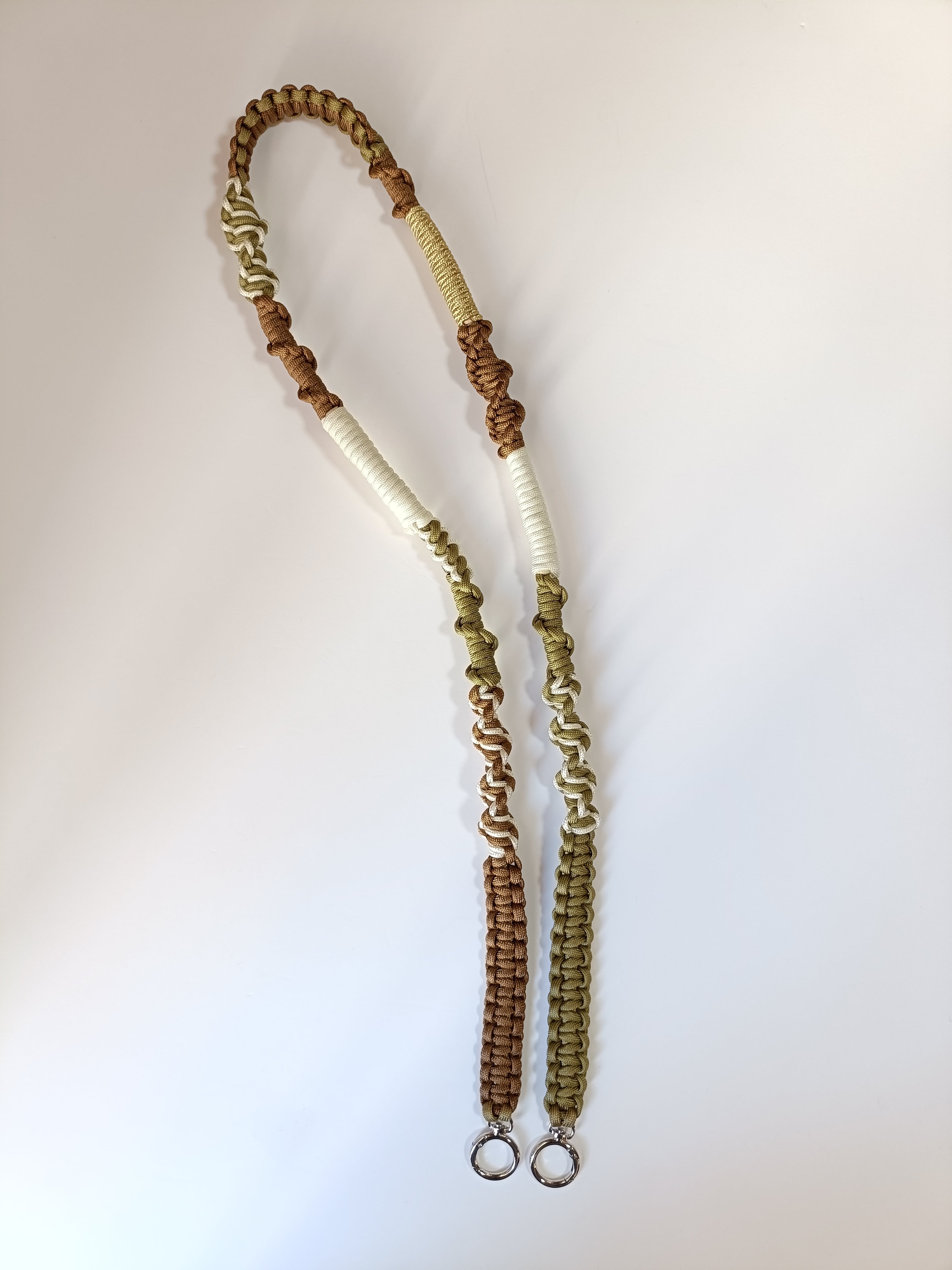 013/スマホショルダー/パラコード/ブラウン×クリーム×カーキベージュ×ゴールド
